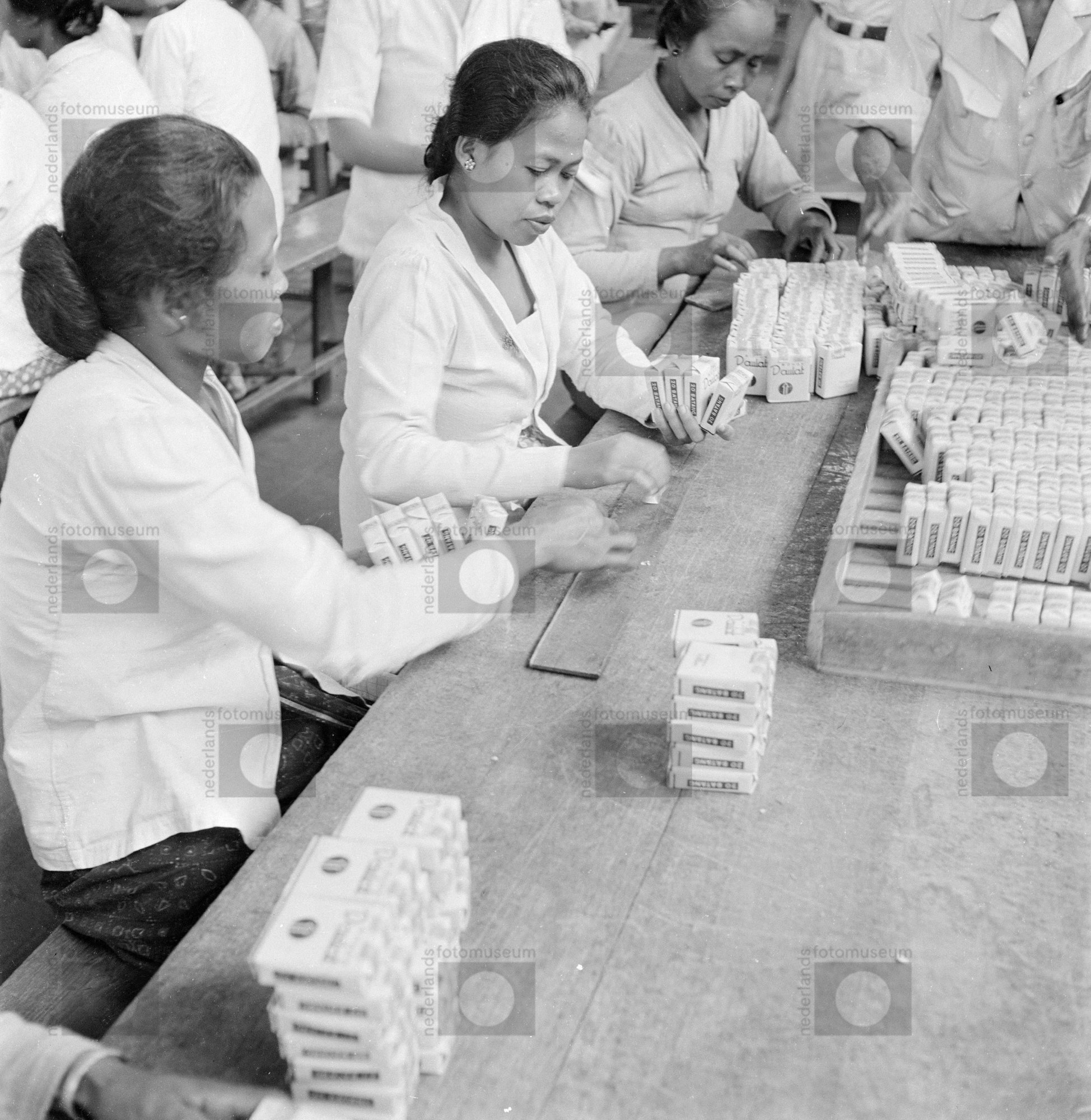 Vrouwen aan het werk in de sigarettenfabriek Faroka ...