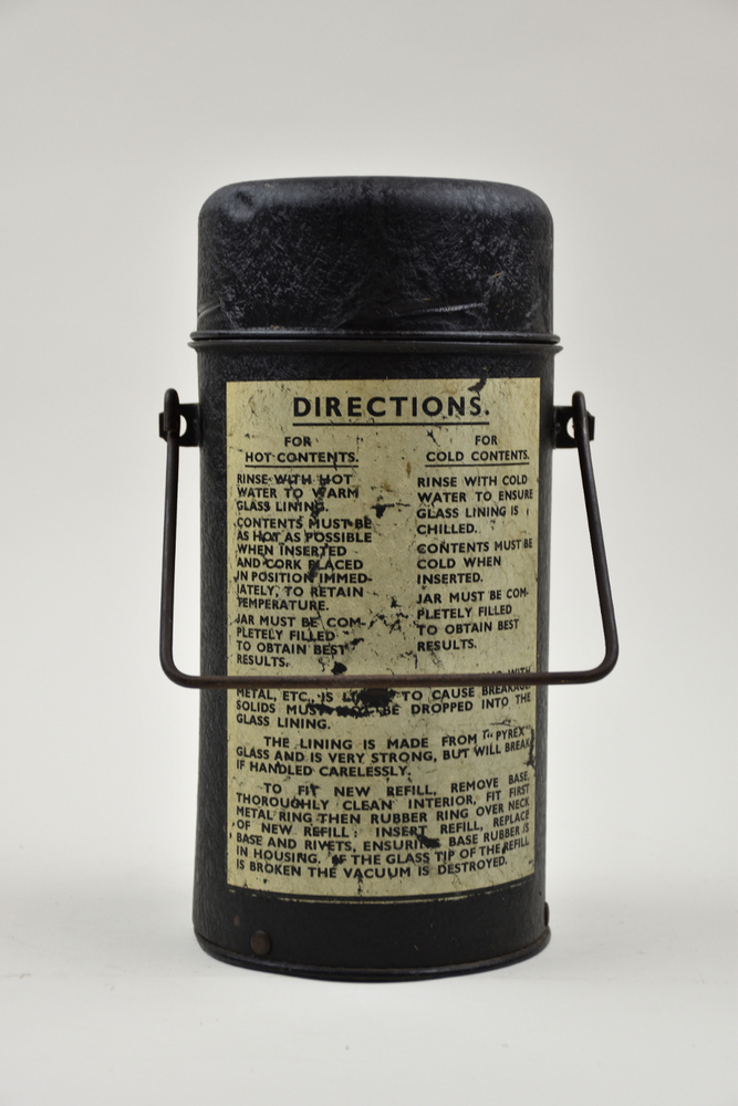 Brits model ronde zwarte geverfde thermoskan om voed...