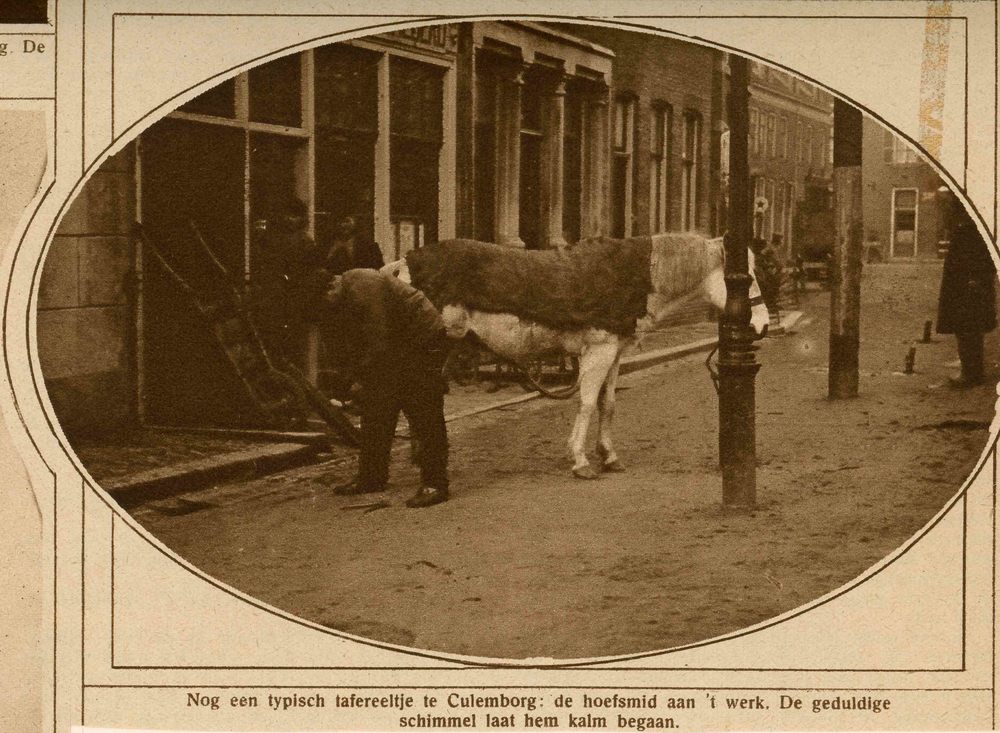 Foto, voorstellende een hoefsmid te Culemborg, jaren...