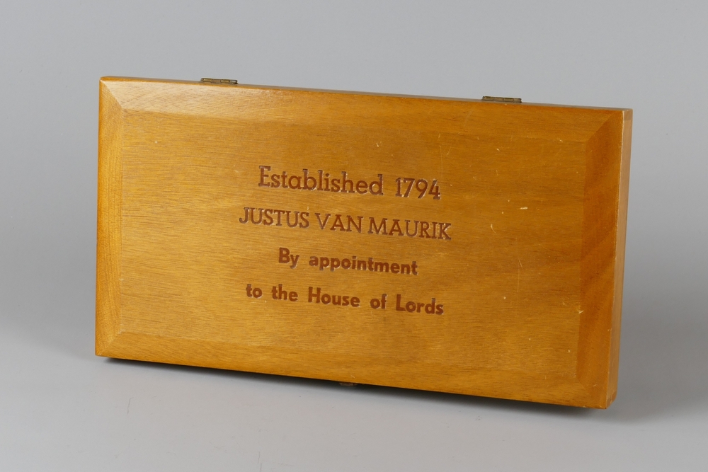 sigarenkist van hout met opschrift Justus van Maurik...