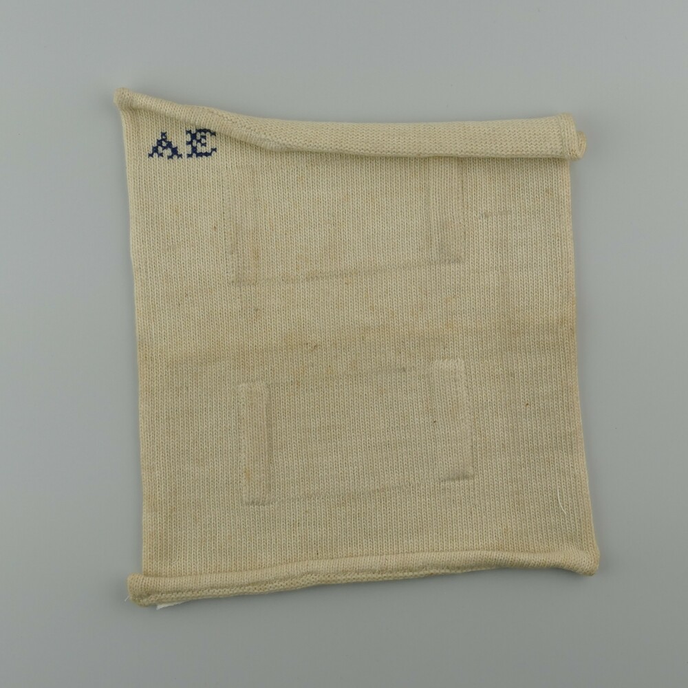 proeflap van tricot gemerkt AE circa 1920