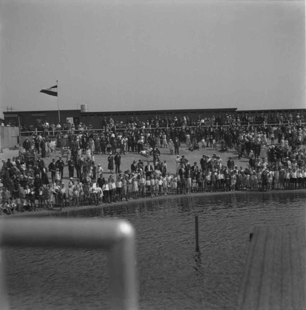 Foto, voorstellende de opening van het nieuwe zwemba...