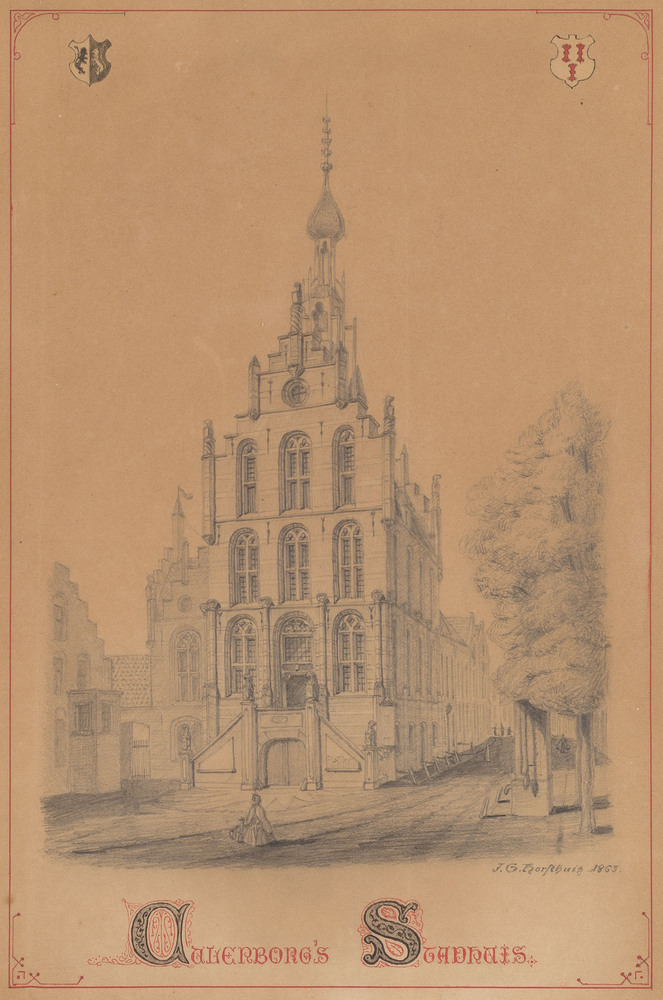 Tekening in potlood voorstellende Culenborg's Stadhu...
