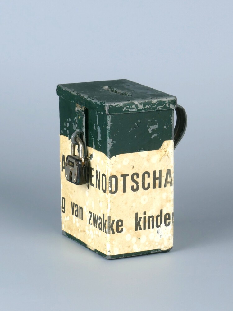 collecte busje van metaal met hangslot