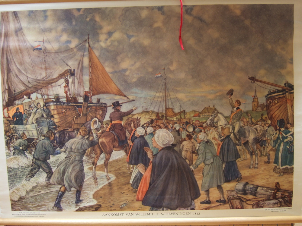 Schoolplaat op linnen, "Aankomst van Willem I te Sch...