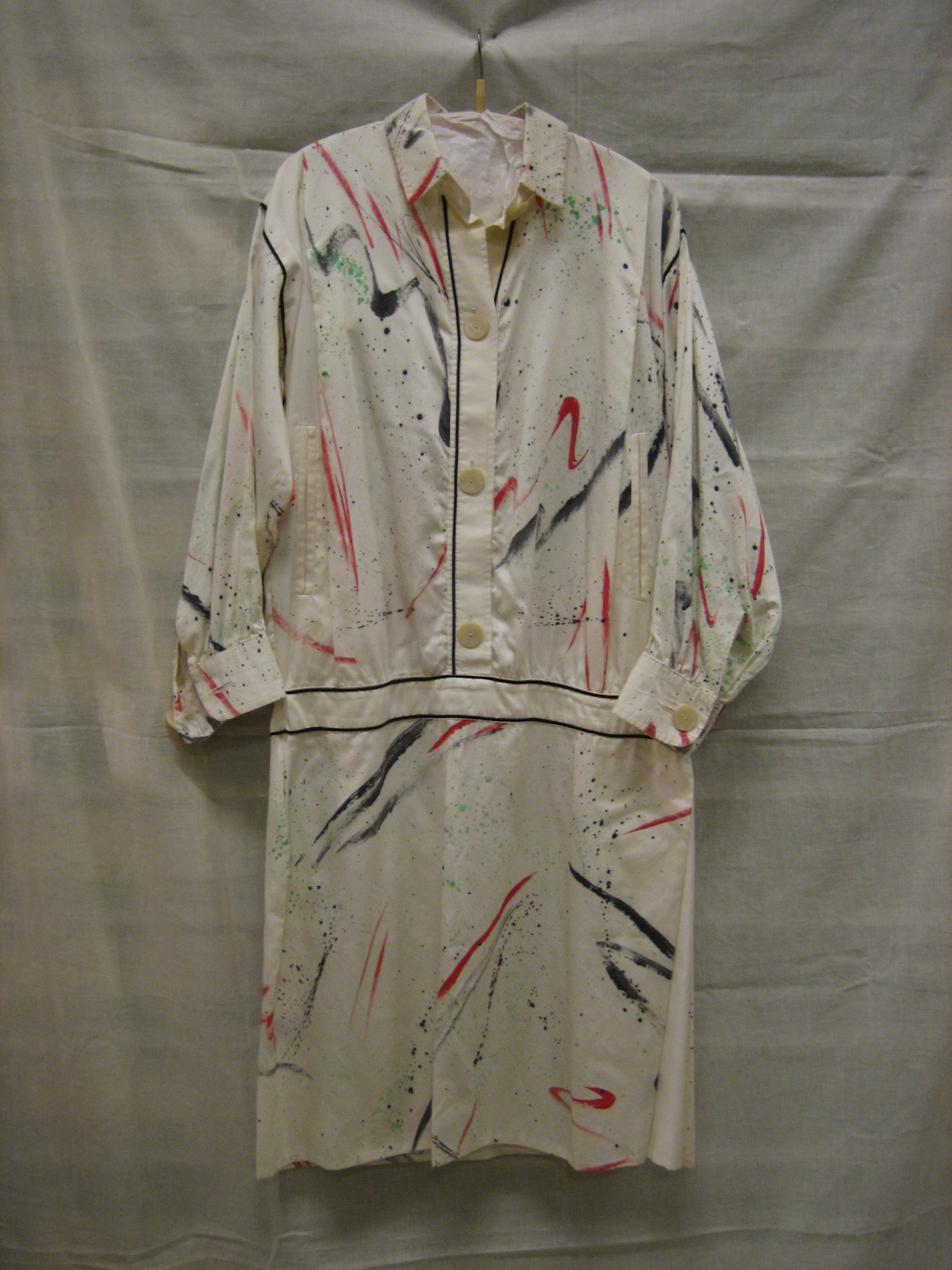 Jurk van wit katoen bedrukt in kleuren rood zwart en...