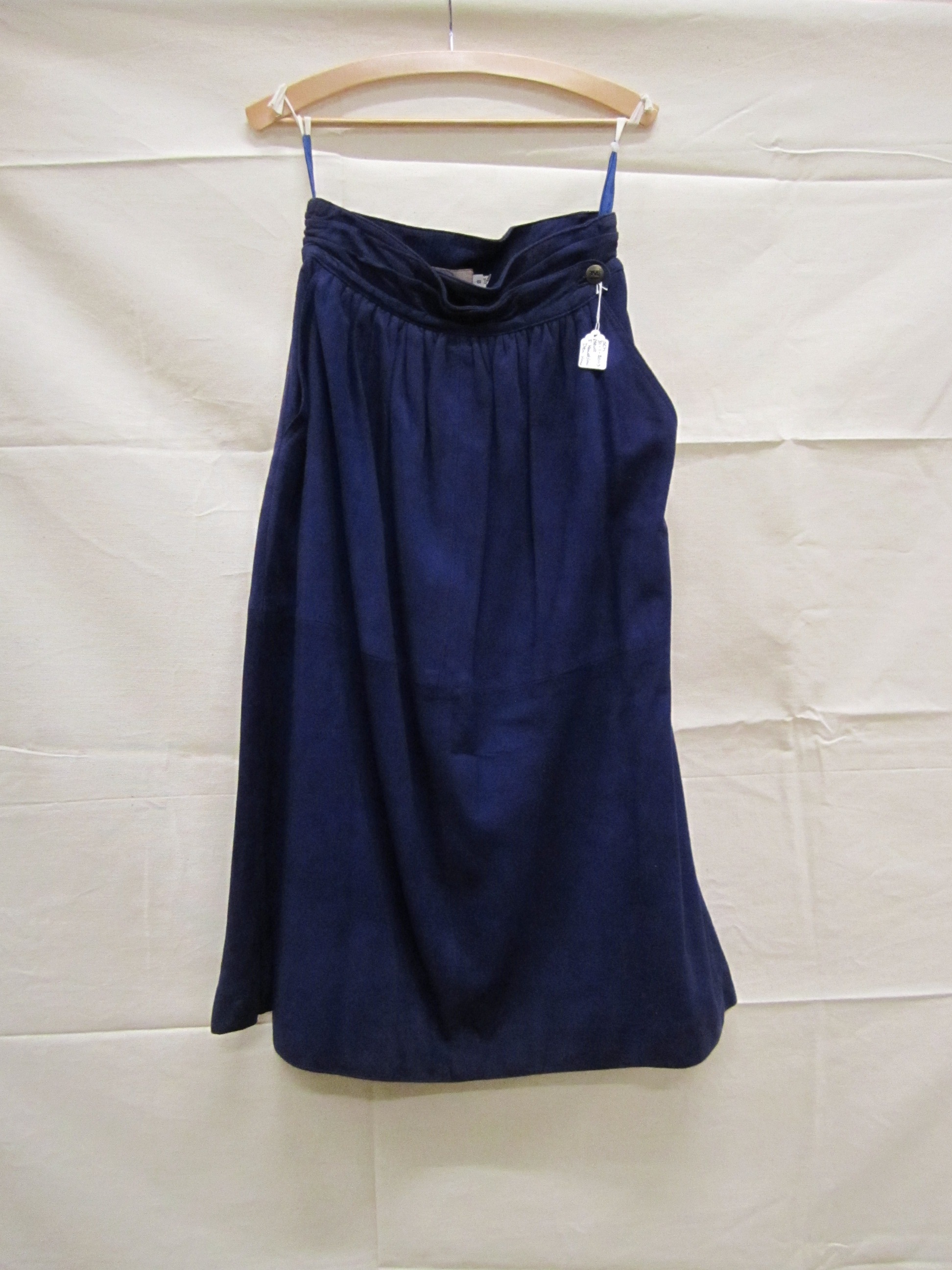 Rok van donkerblauw suède met sluiting in de linker zij