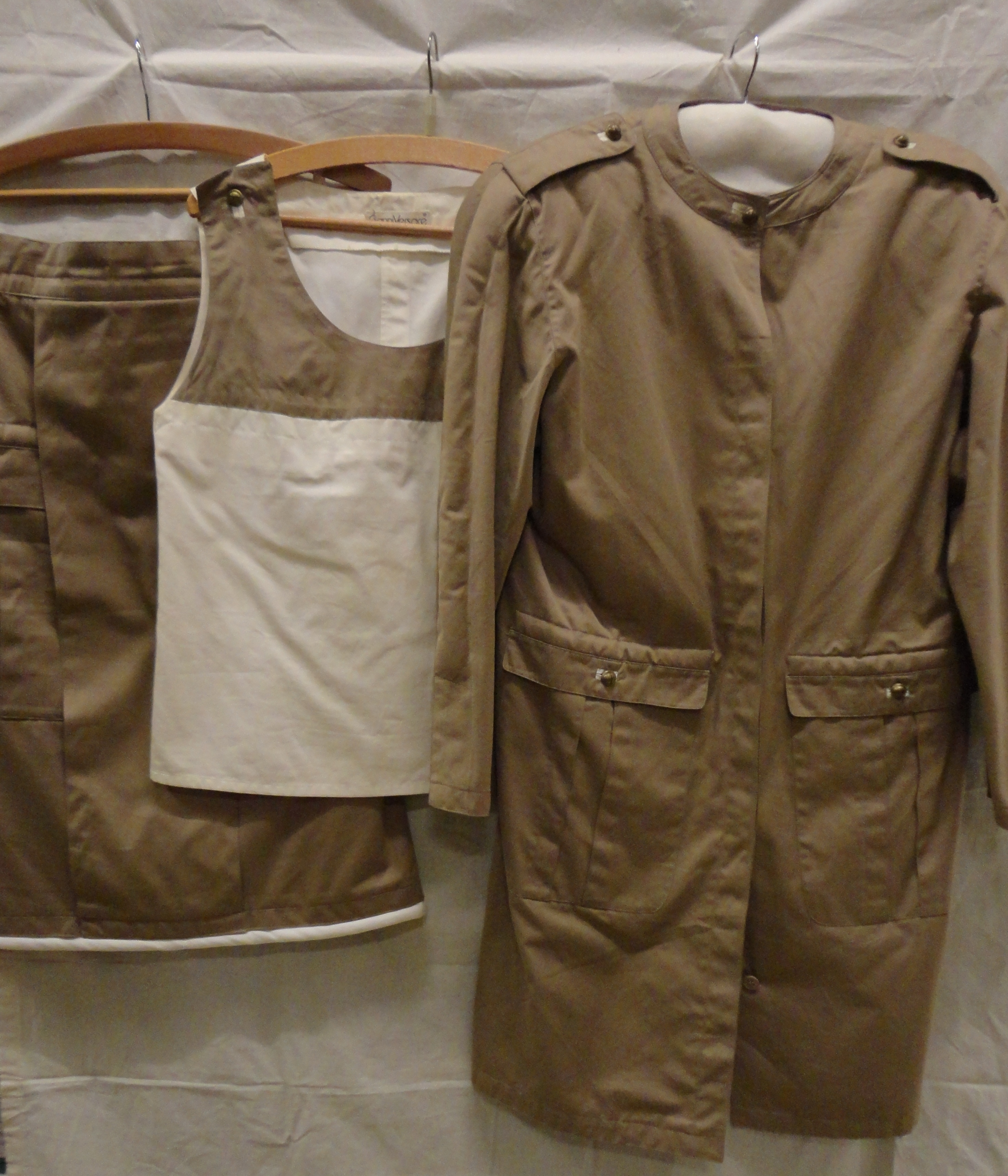 Ensemble van beige/khaki keperkatoen met witte kleur...