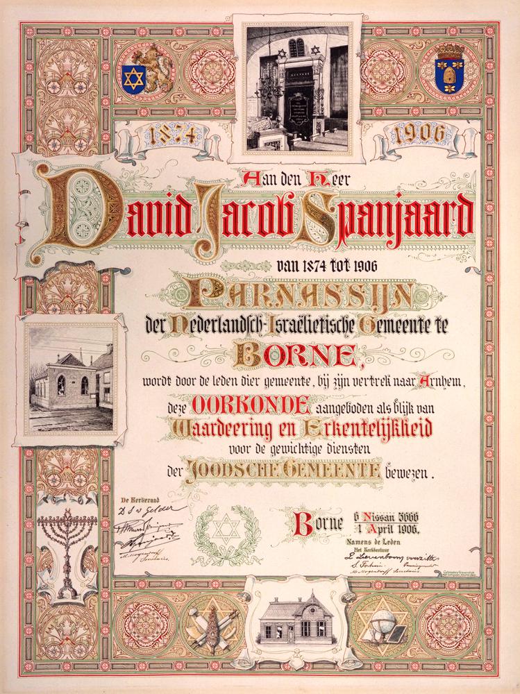 Oorkonde voor David Jacob Spanjaard