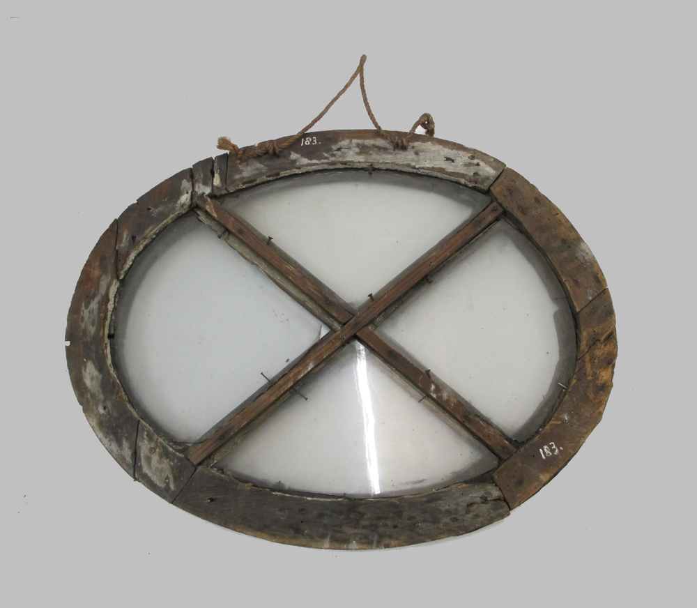Ovaal raam met in het midden een diagonaal kruis