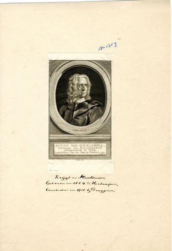Portret van Sicco van Goslinga door J. Houbraken