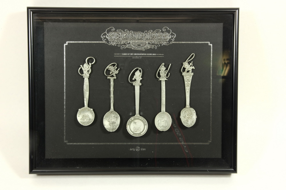 Lijst met vijf tinnen lepeltjes van de Olympische Zo...