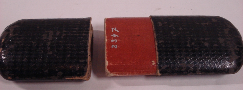 brillenkoker. Plat, ovaal zwart van karton voorzien ...