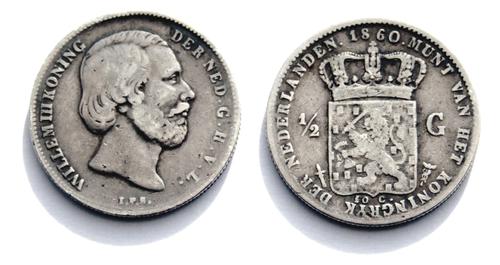 Zilveren Nederlandse betaalmunt, ½ Gulden, 1860 en 1868