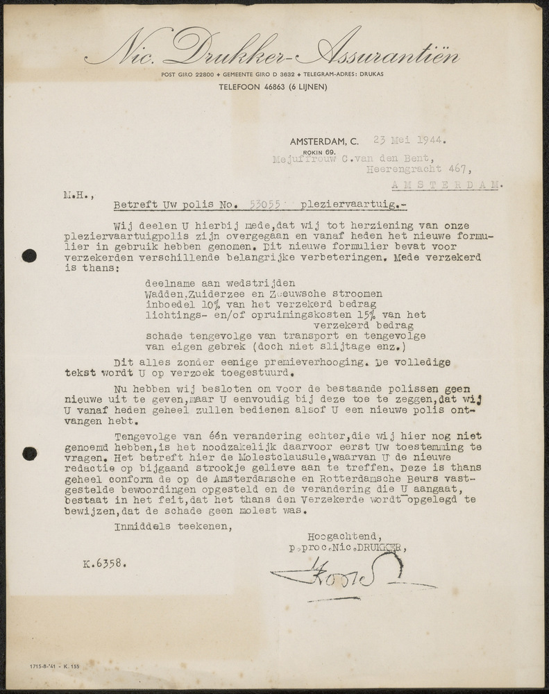 Betreffende Polis No. 53055 Pleziervaartuig