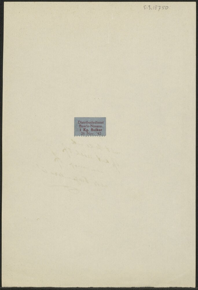 Opgeplakte distributiebon voor een kilo suiker van d...