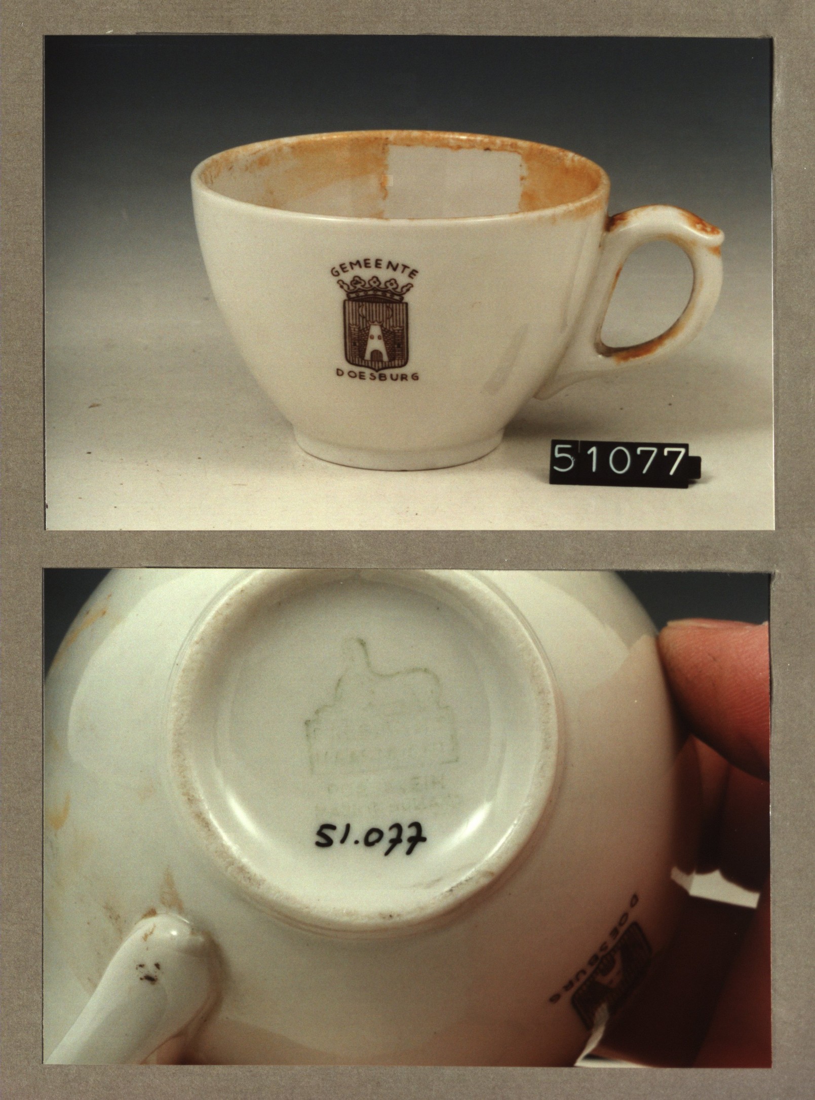 Kop met opschrift, model SMN met decor Gemeente Does...