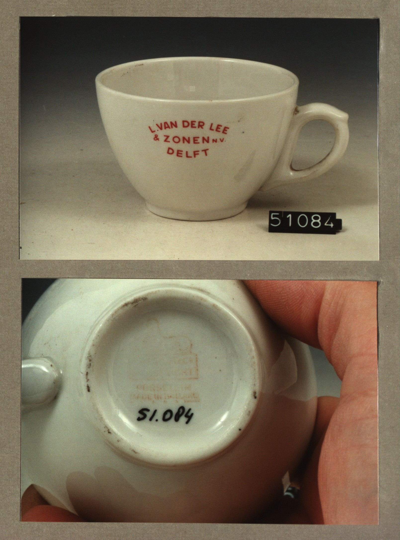 Kop met opschrift, model SMN met decor van der Lee e...