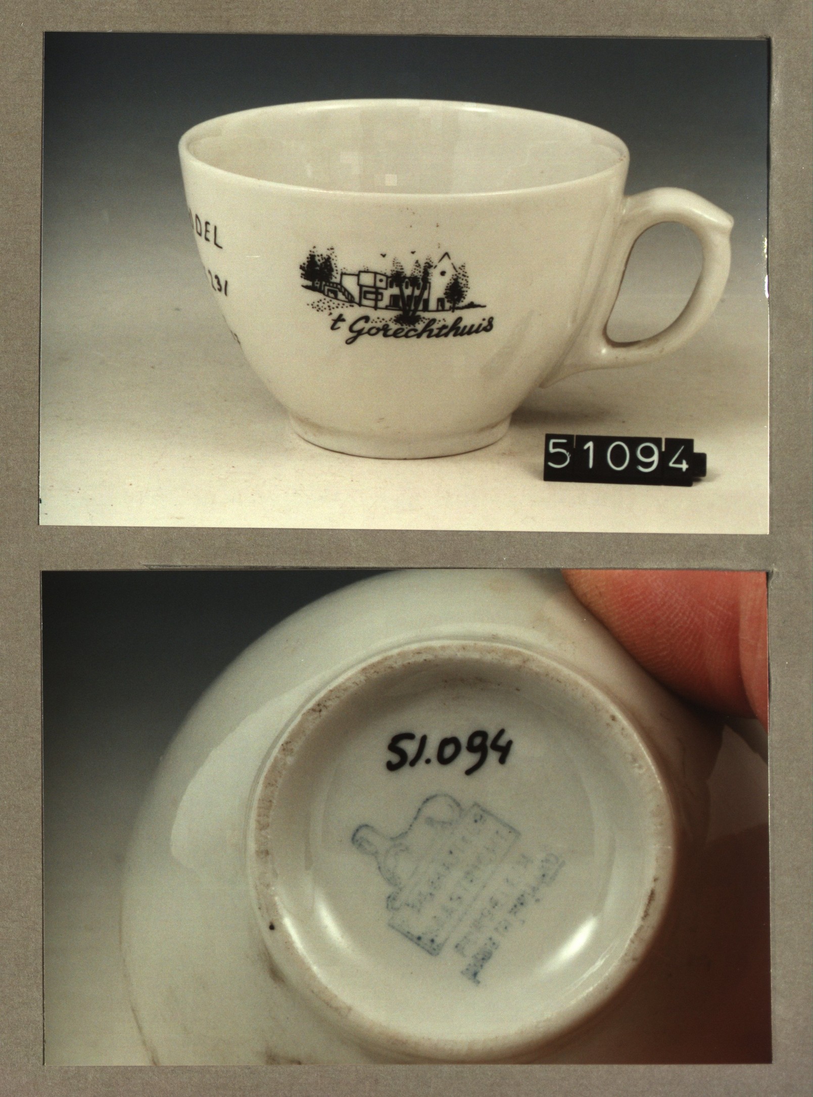 Kop met opschrift, model SMN met decor 't Gorechthui...