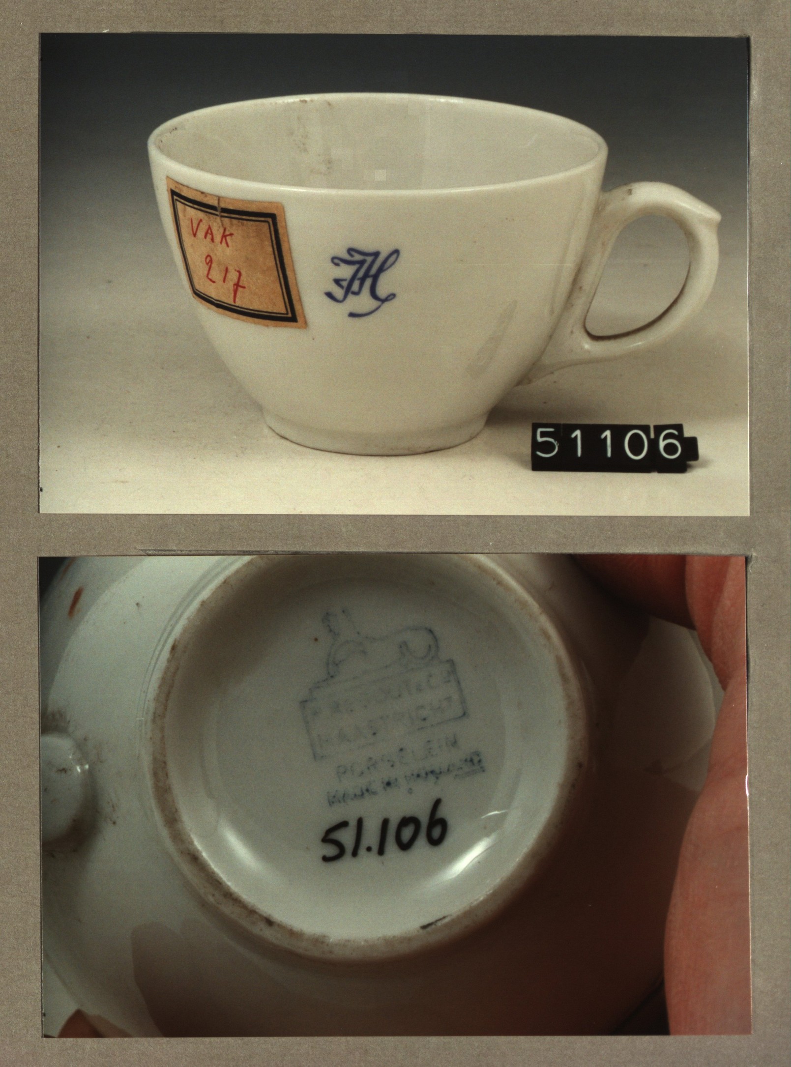 Kop met opschrift, model SMN met decor HM