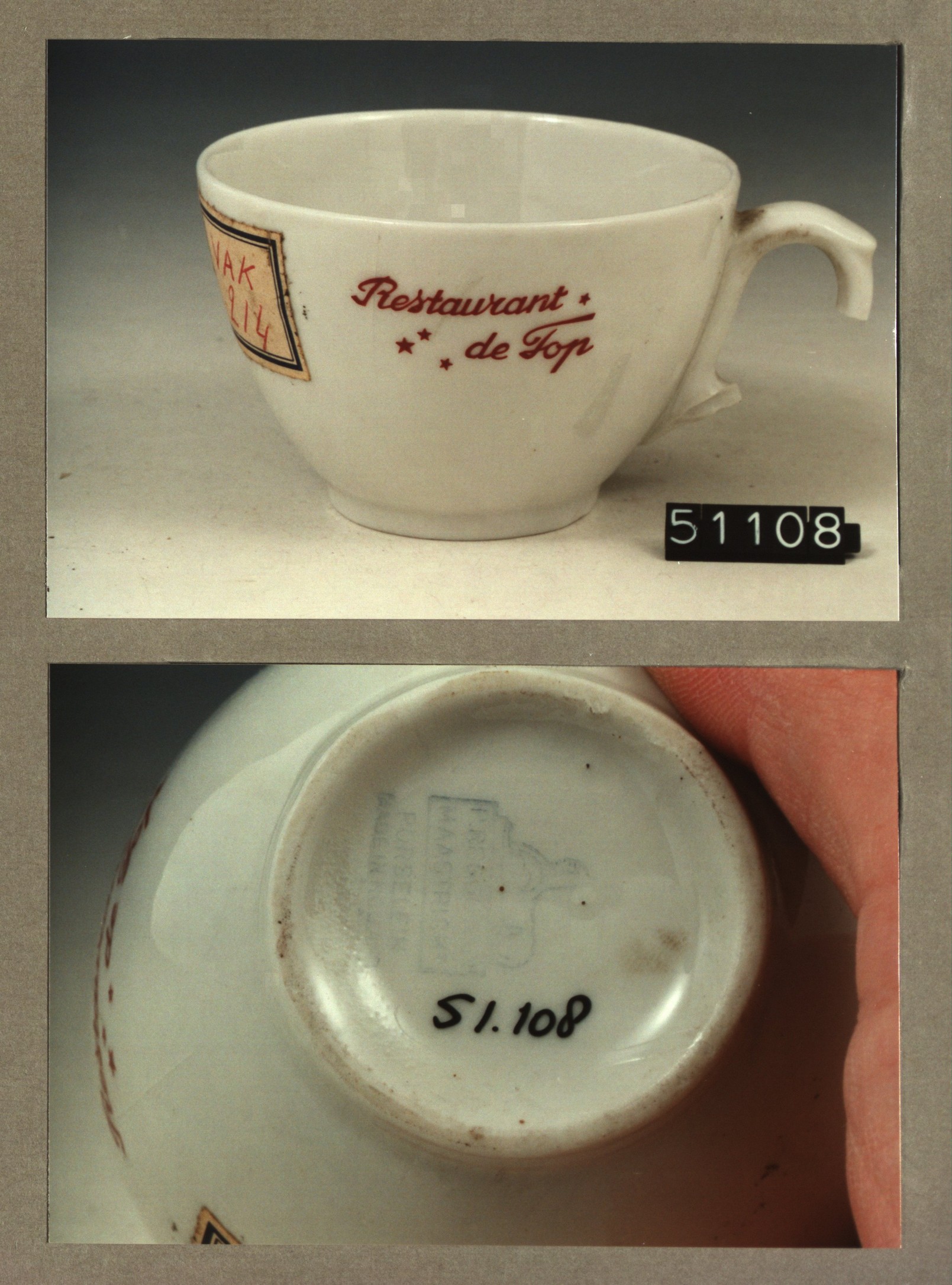 Kop met opschrift, model SMN met decor de Top restau...