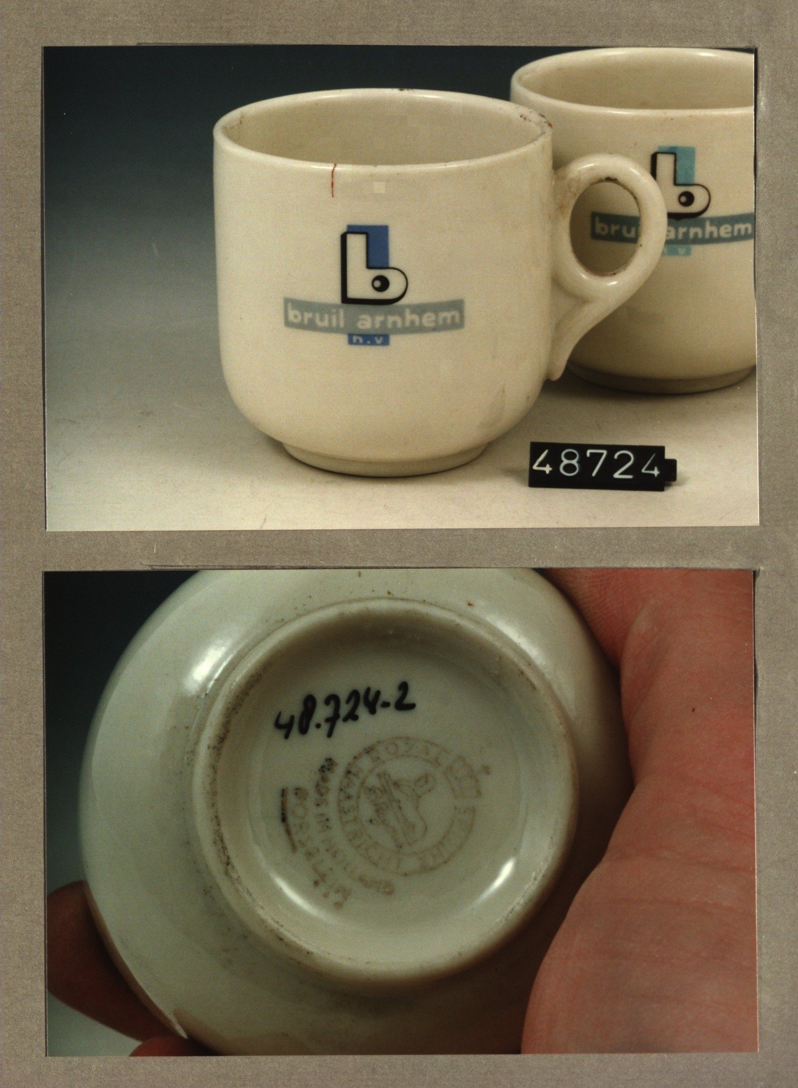 Kop met opschrift, model F met decor Bruil Arnhem B NV