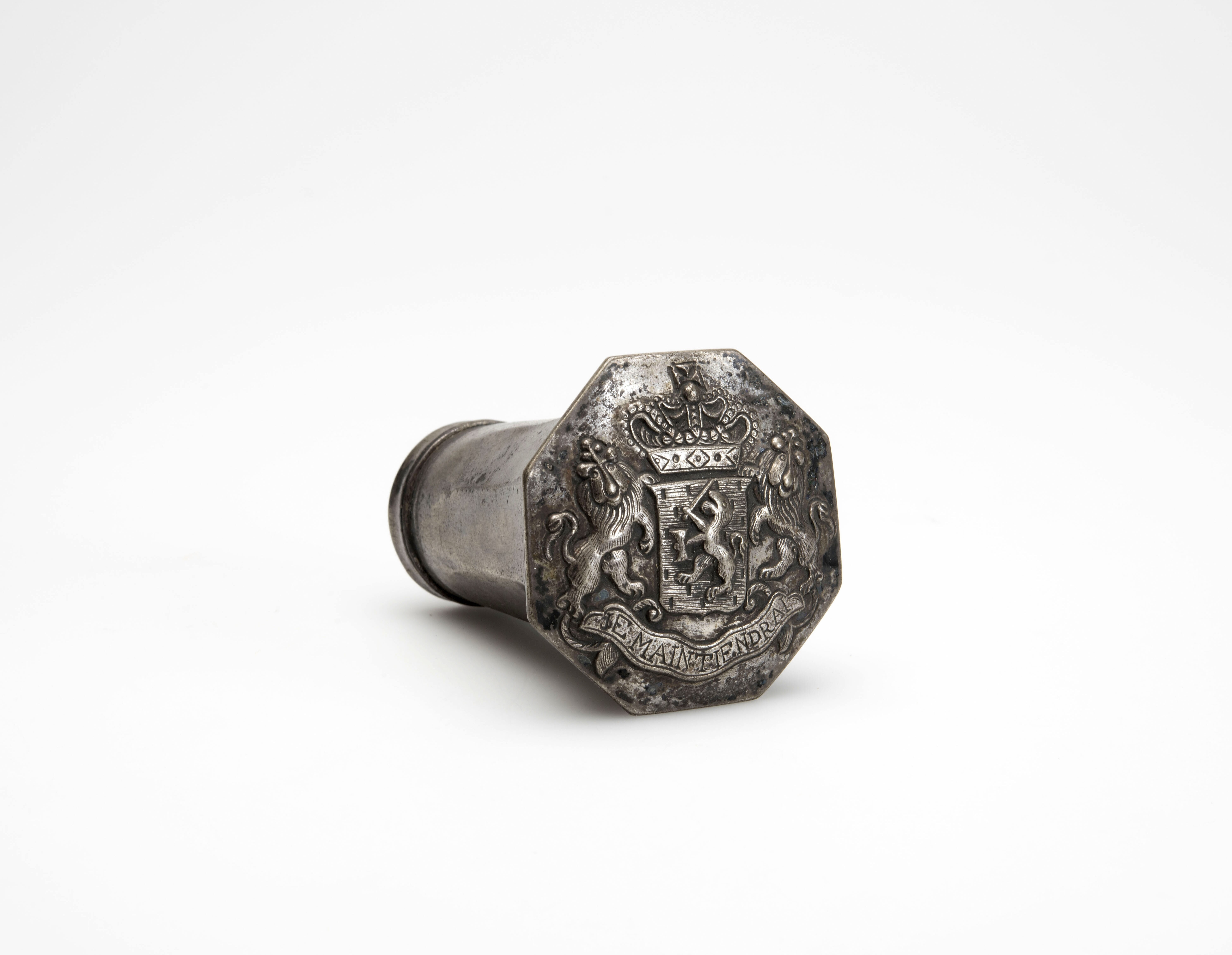 Zilveren knop van een wandelstok, met het Nederlands...