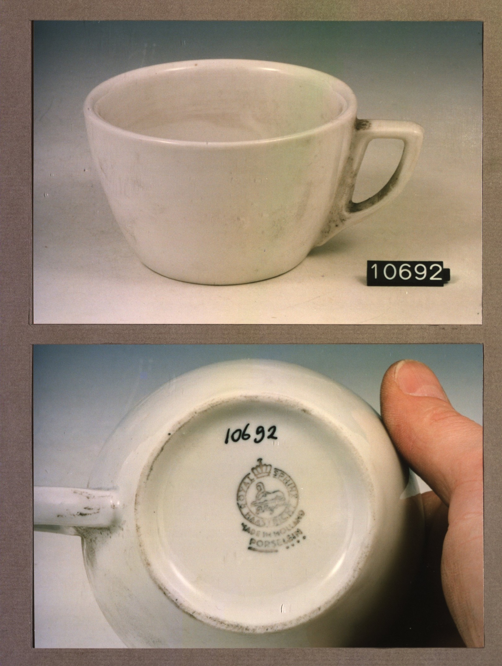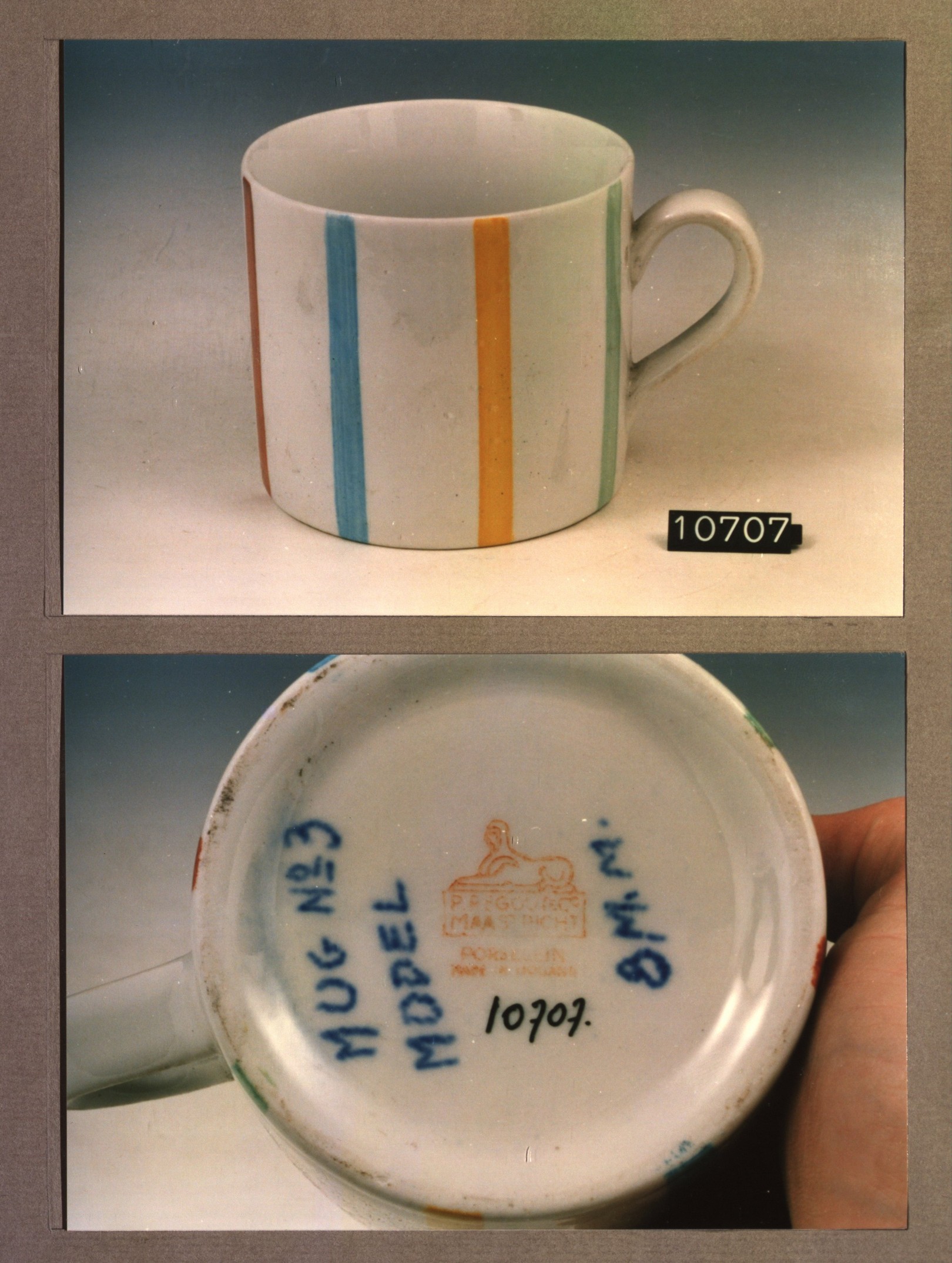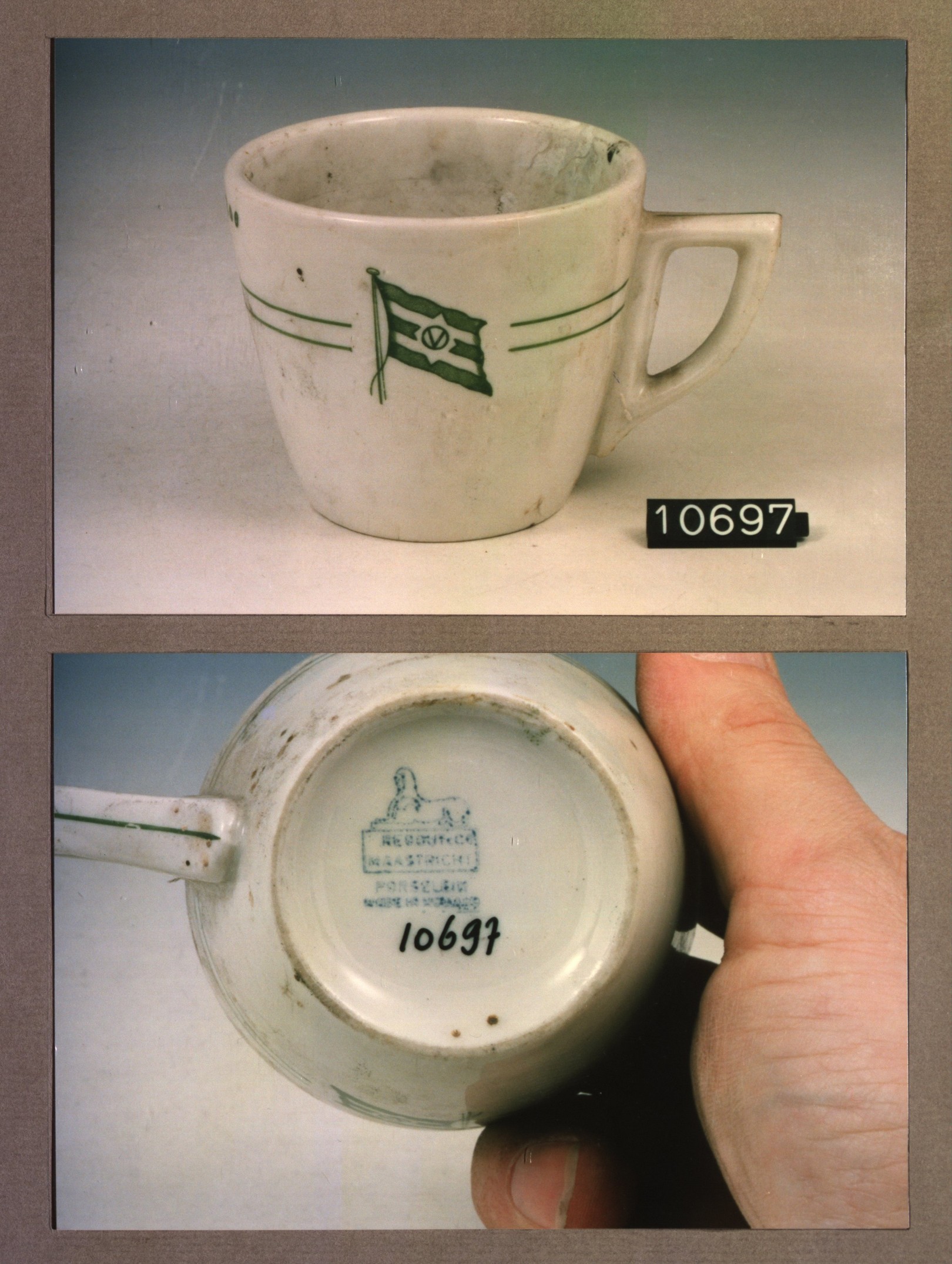 Kop met opschrift, model Modern met decor Warenhuis V&D