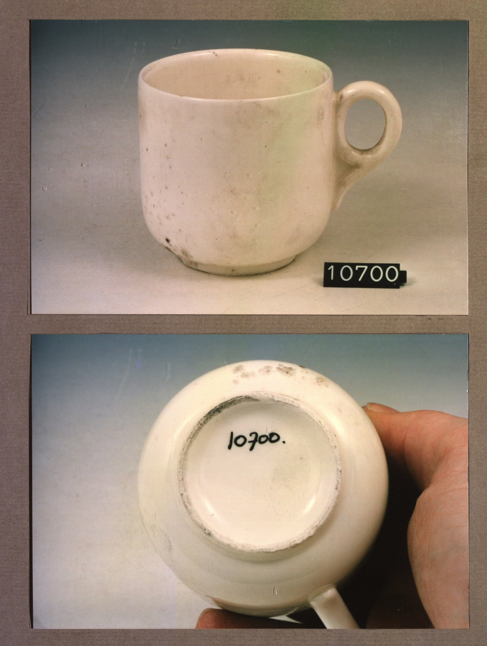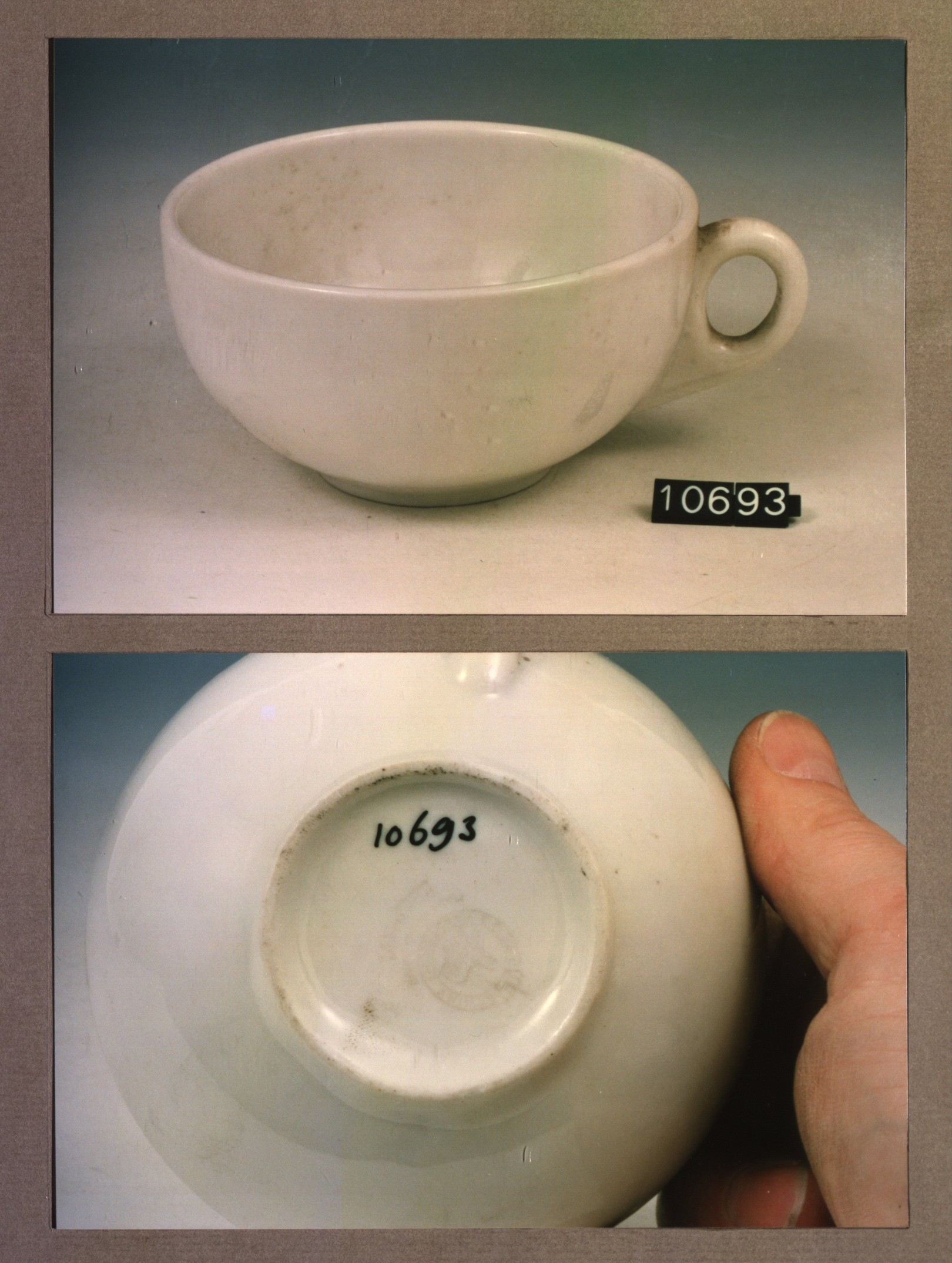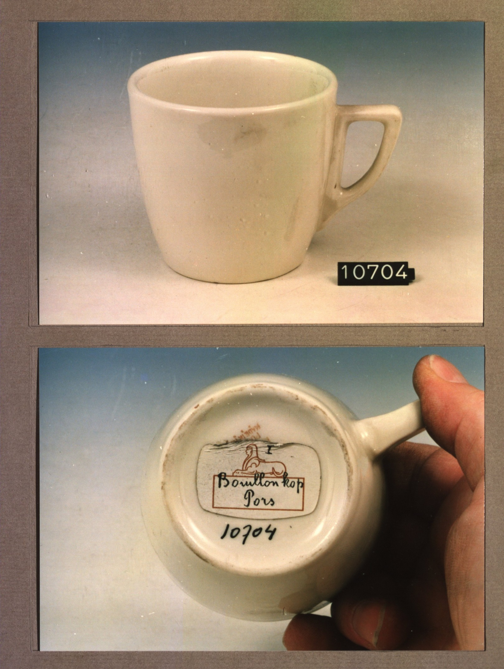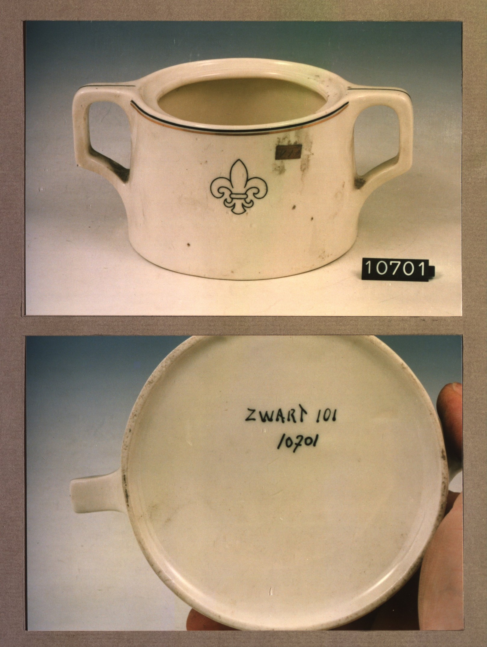 Kop met opschrift, model Modern met decor Warenhuis V&D