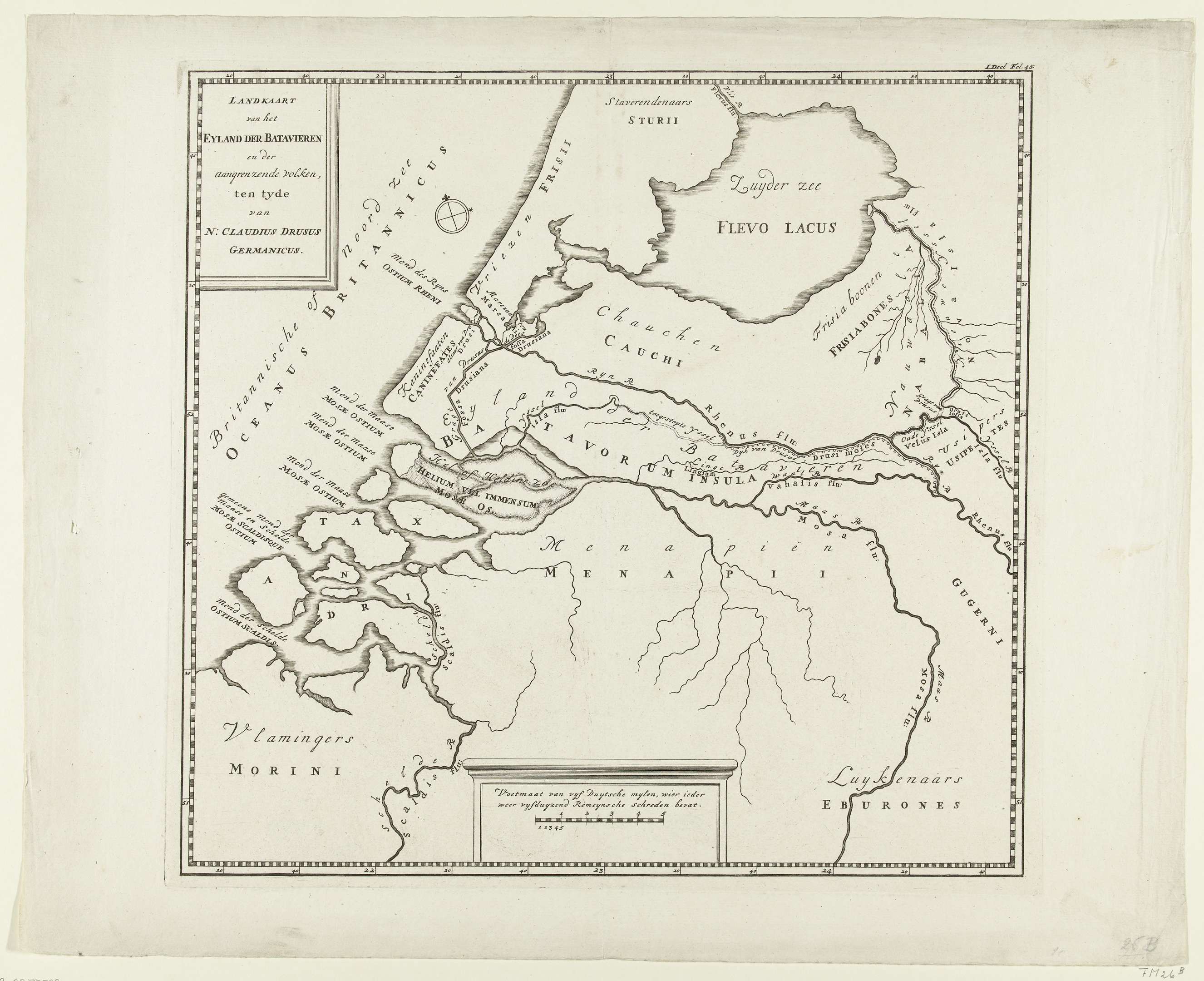 Historische kaart van Nederland met de Romeinse heer...