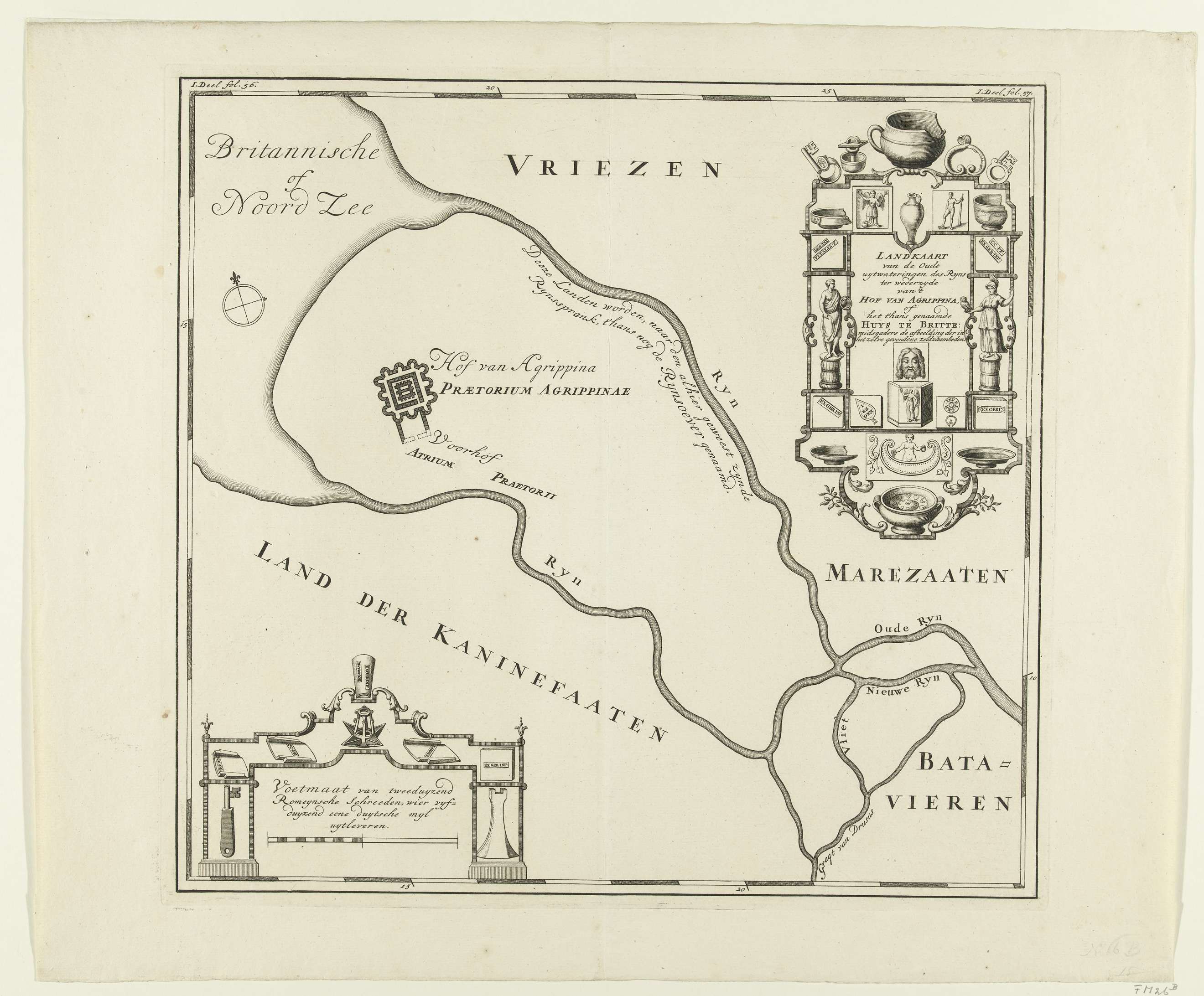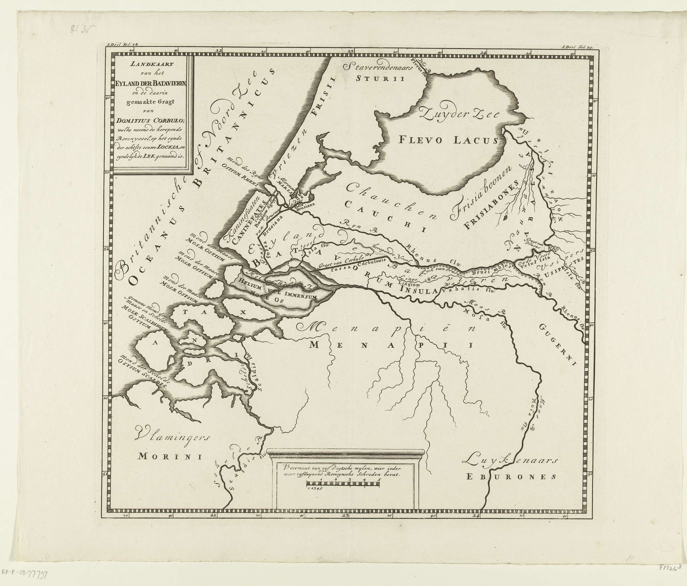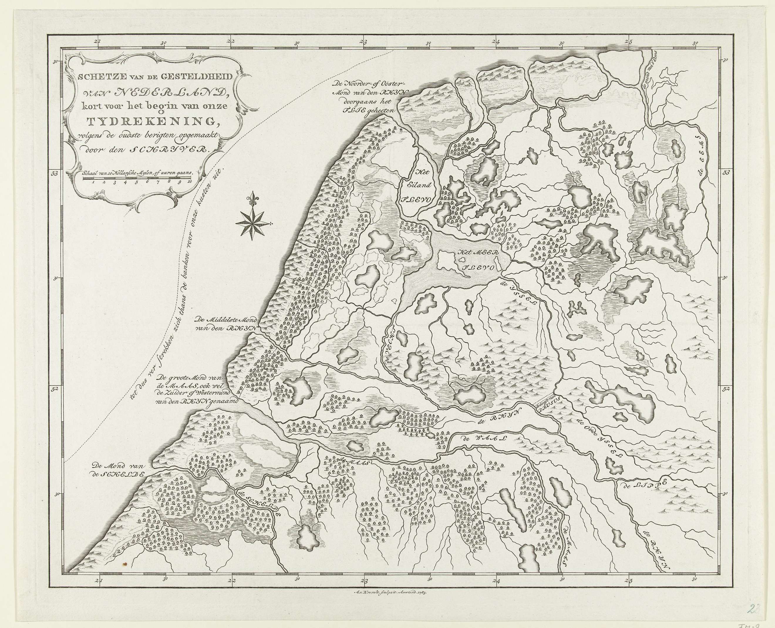 Historische kaart van de monding van de Rijn en het ...