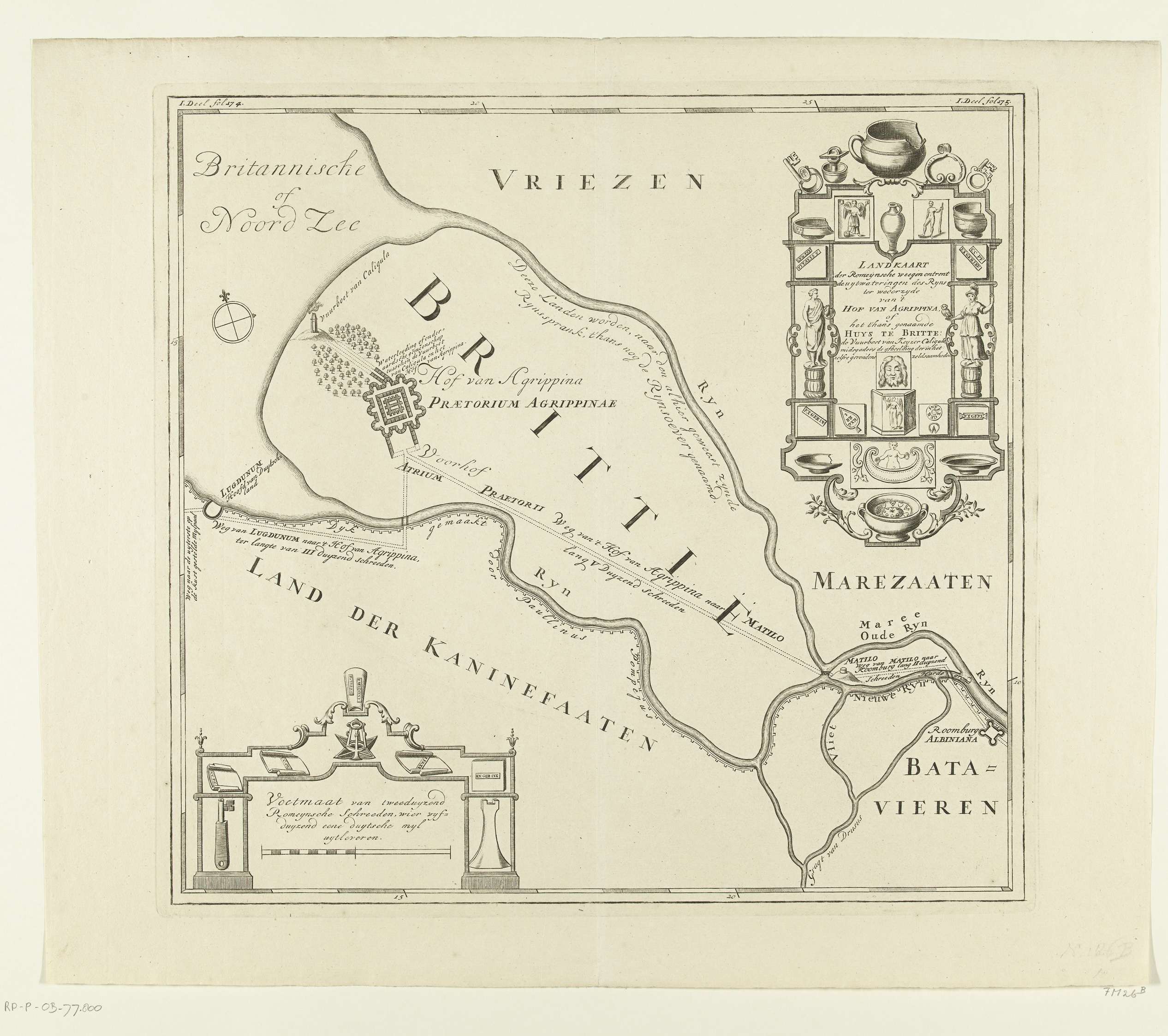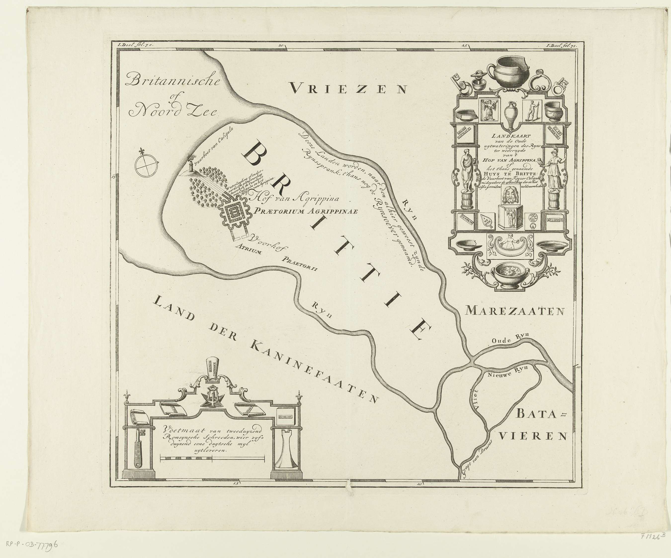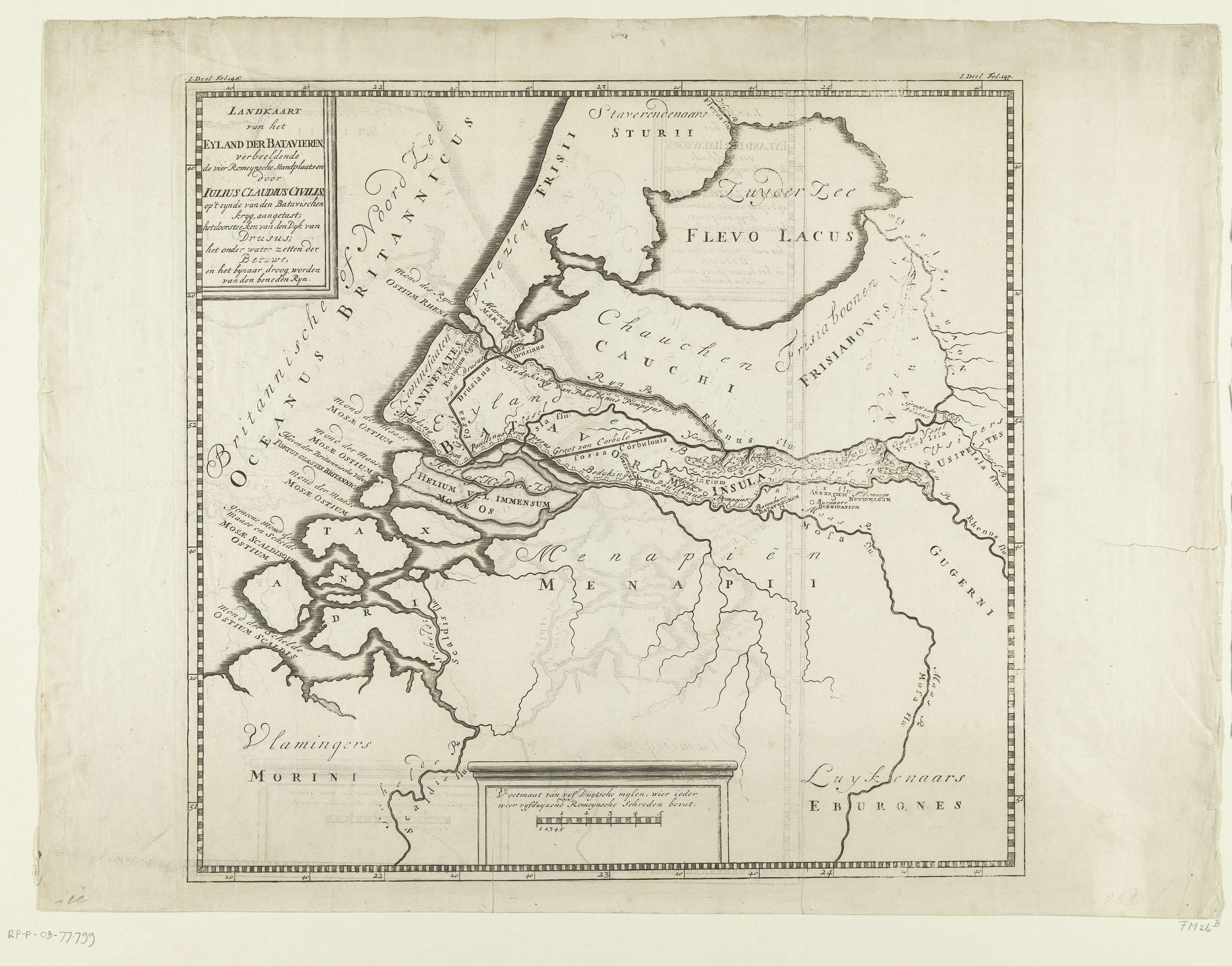 Historische kaart van de monding van de Rijn en het ...