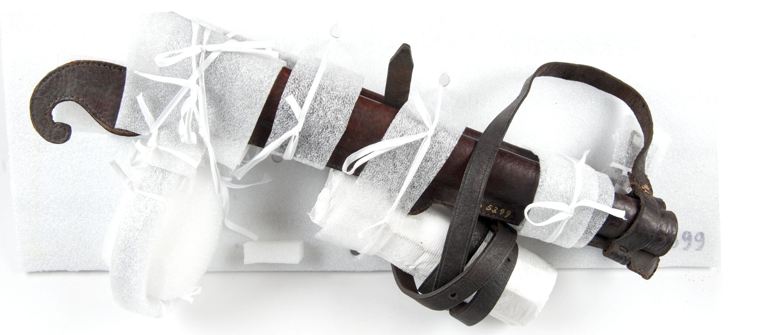 Twee leren pijlkokers, met elkaar verbonden door mid...