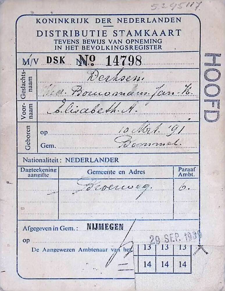 Distributiestamkaart op naam van Derksen