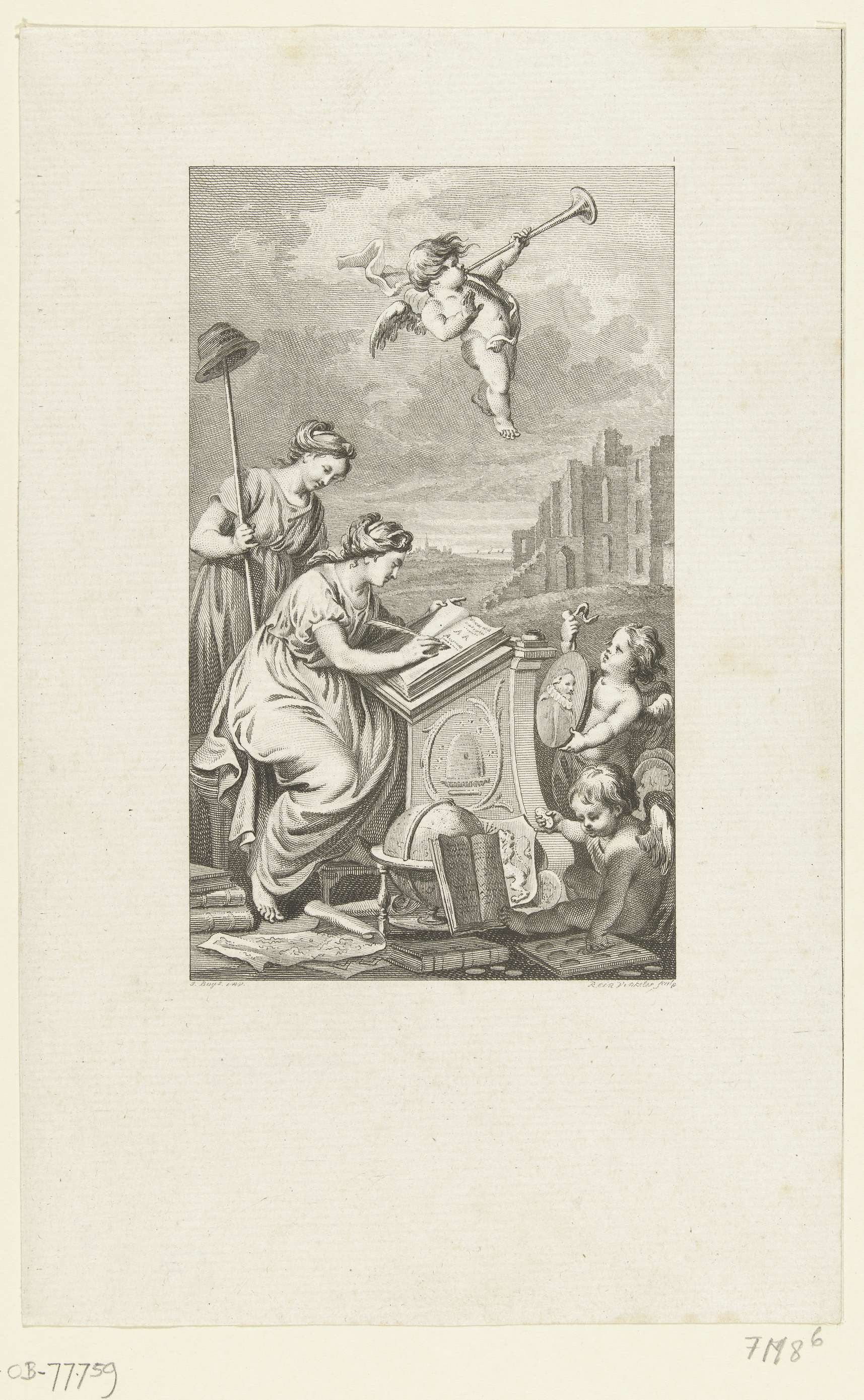 Allegorie waarin Geschiedenis de historie schrijft