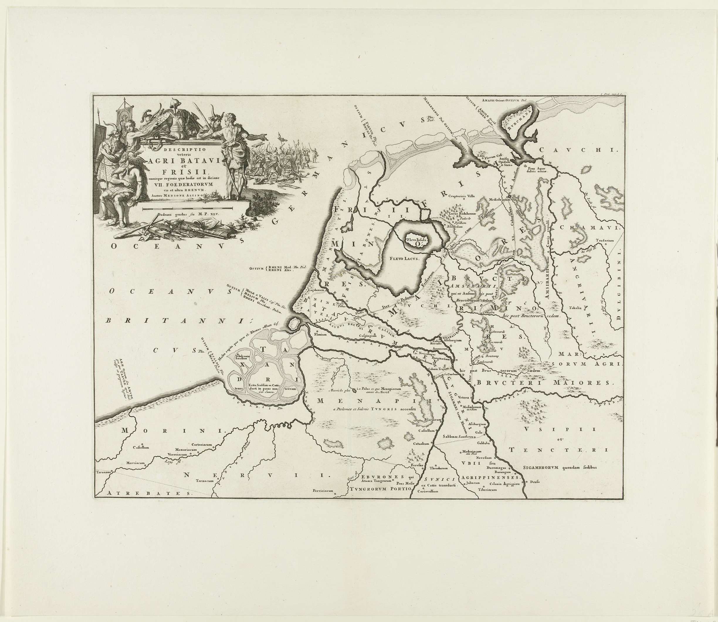 Kaart van de Nederlanden ten tijde van de Bataven