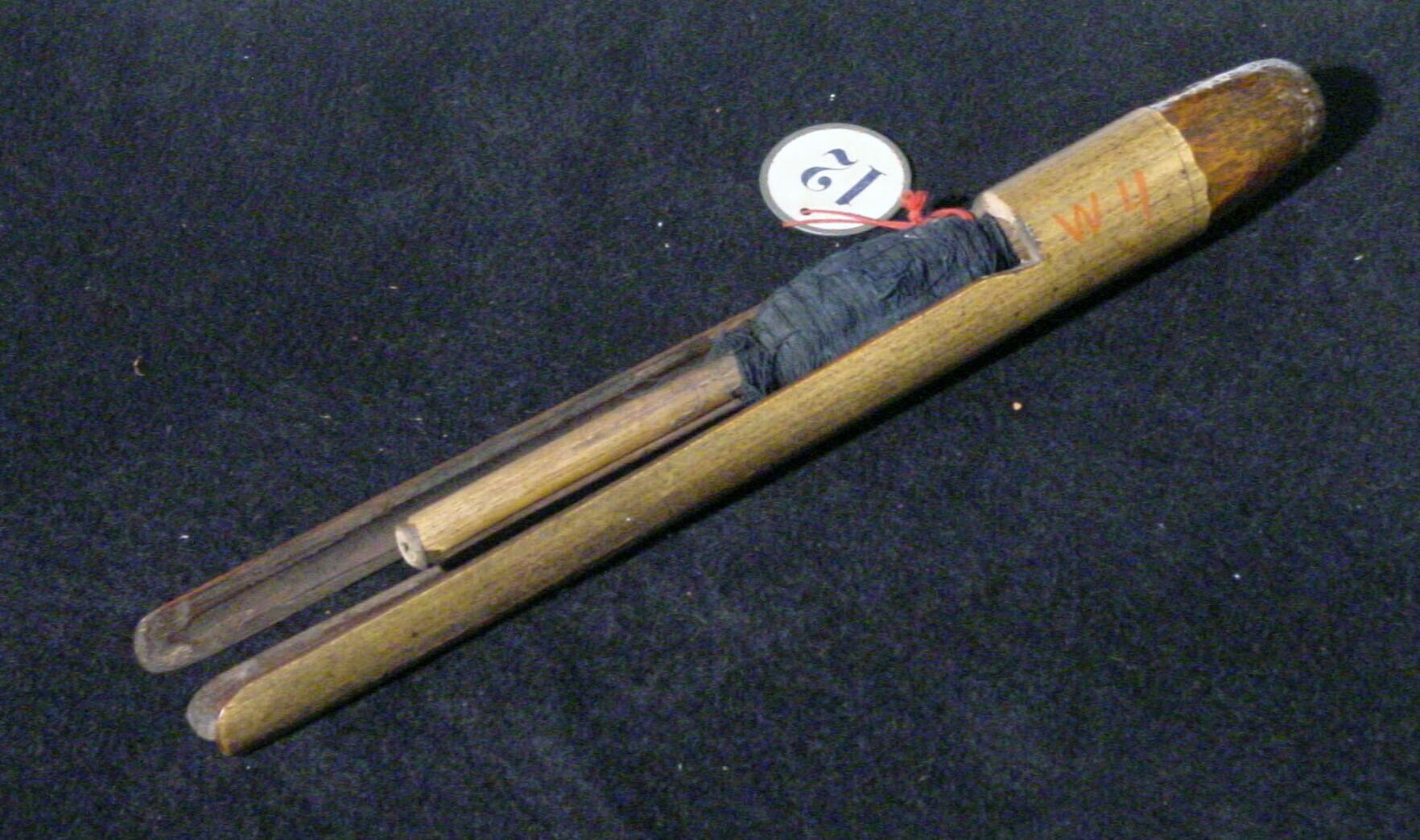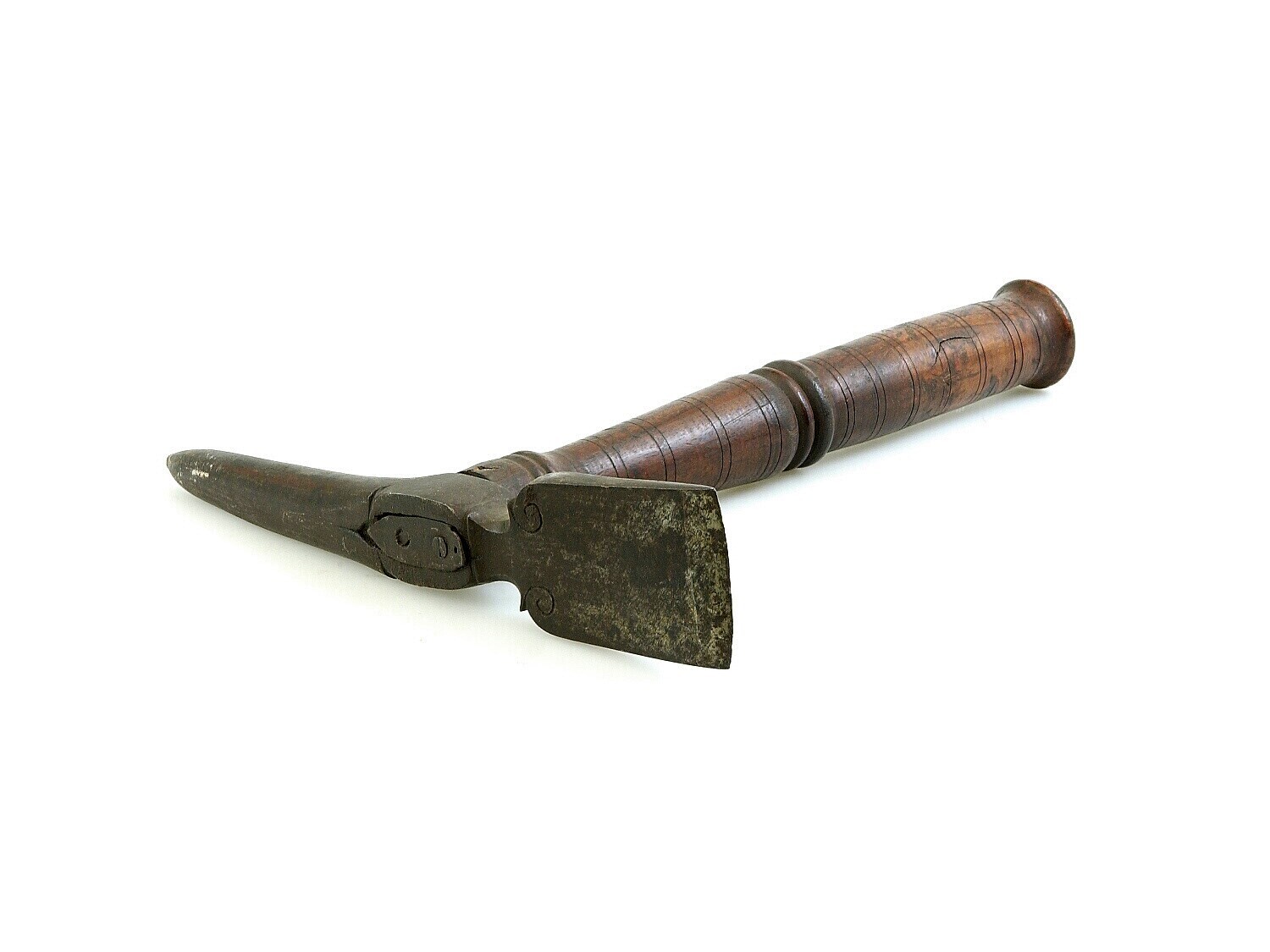 Dissel, met versierde houten steel