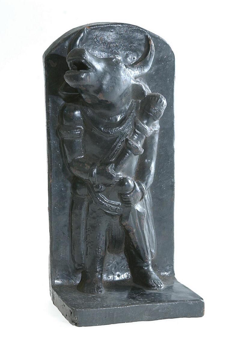 Fantasie Indo-Javaans zwart aardewerk beeld, voorste...