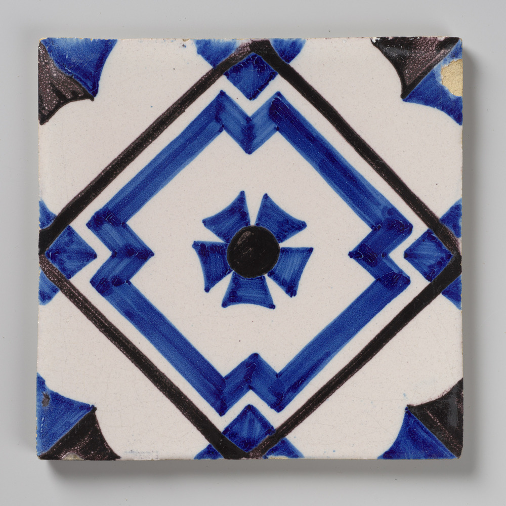 tegel van aardewerk met tinglazuur, voorstellende: o...