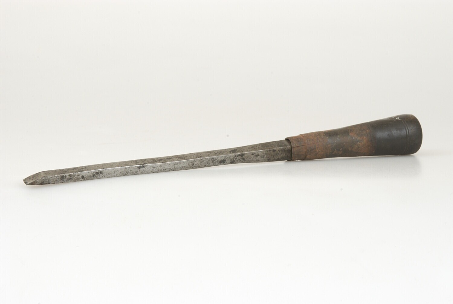 Beitel van ijzer met houten handvat