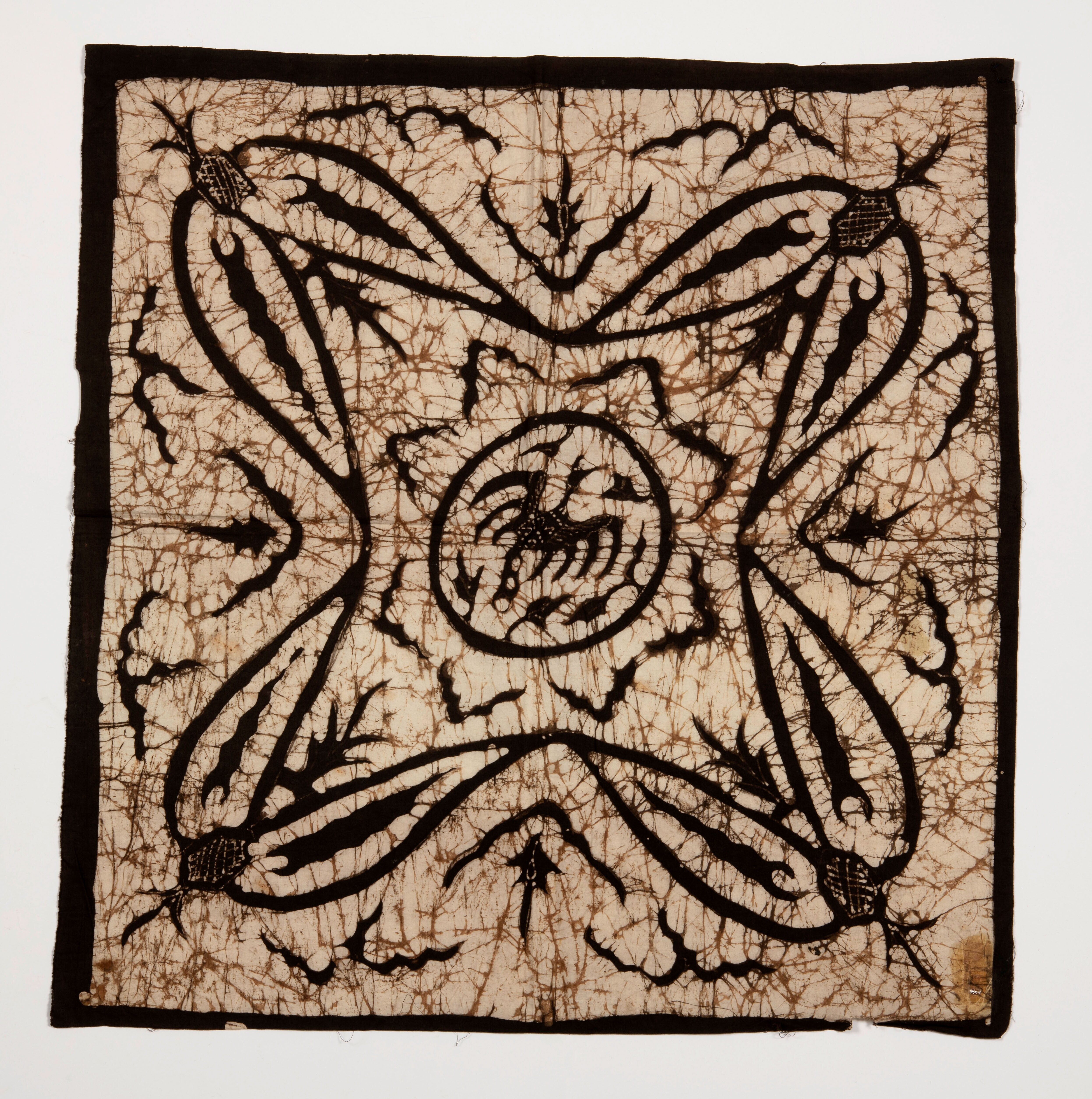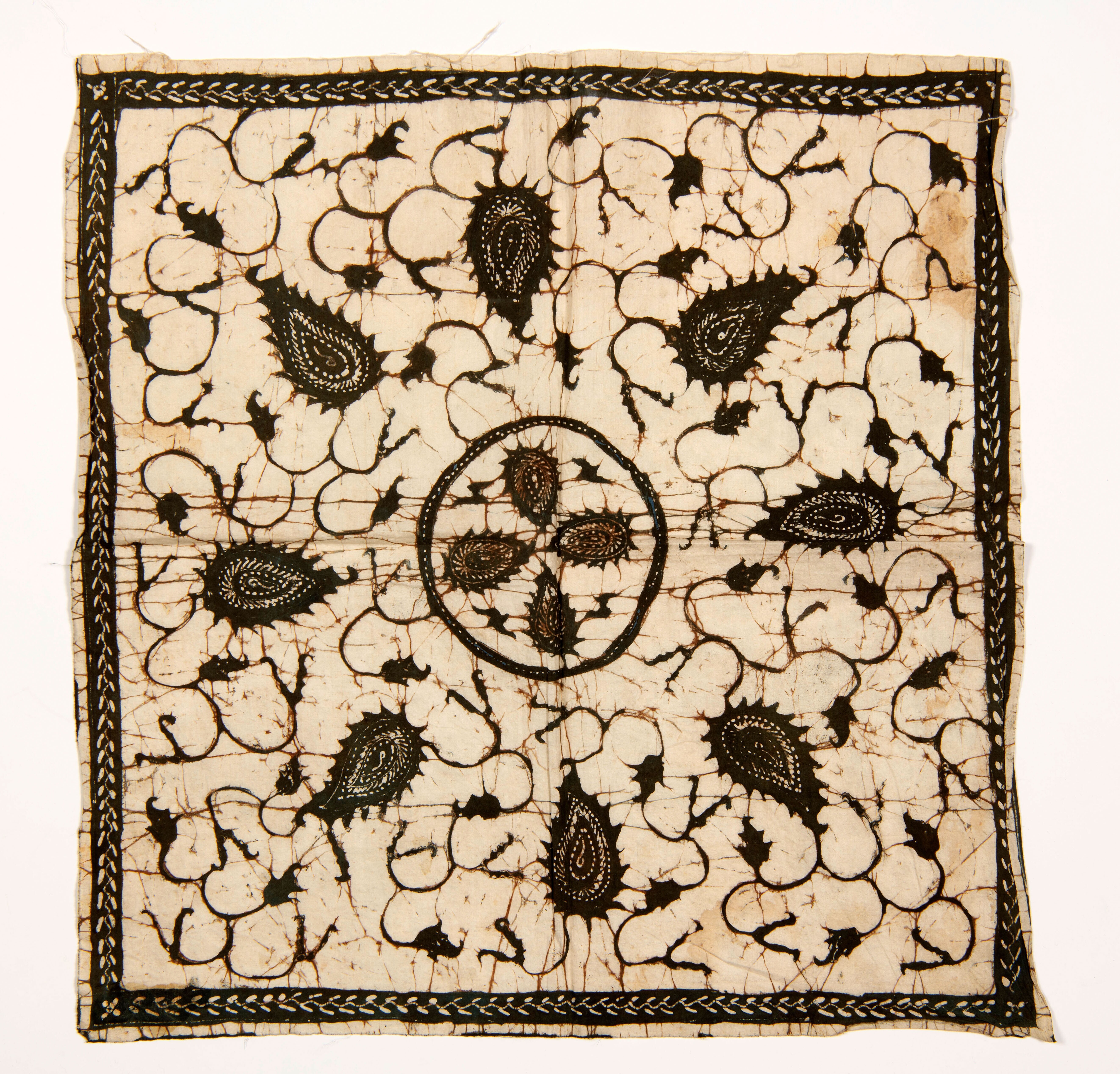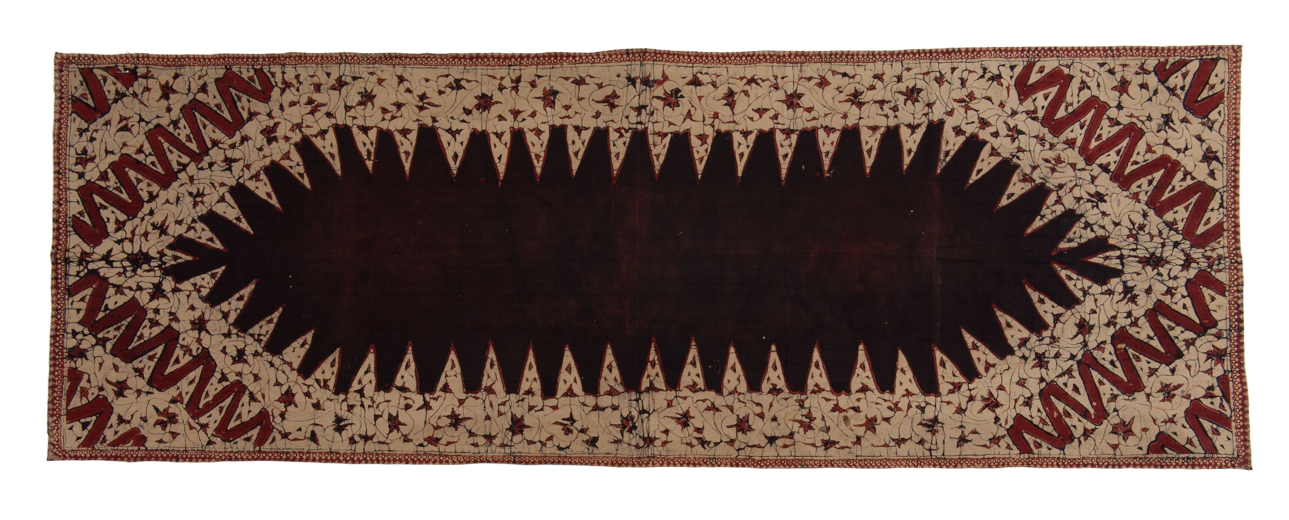 Lap batik, versierd met bruine figuren op witte grond