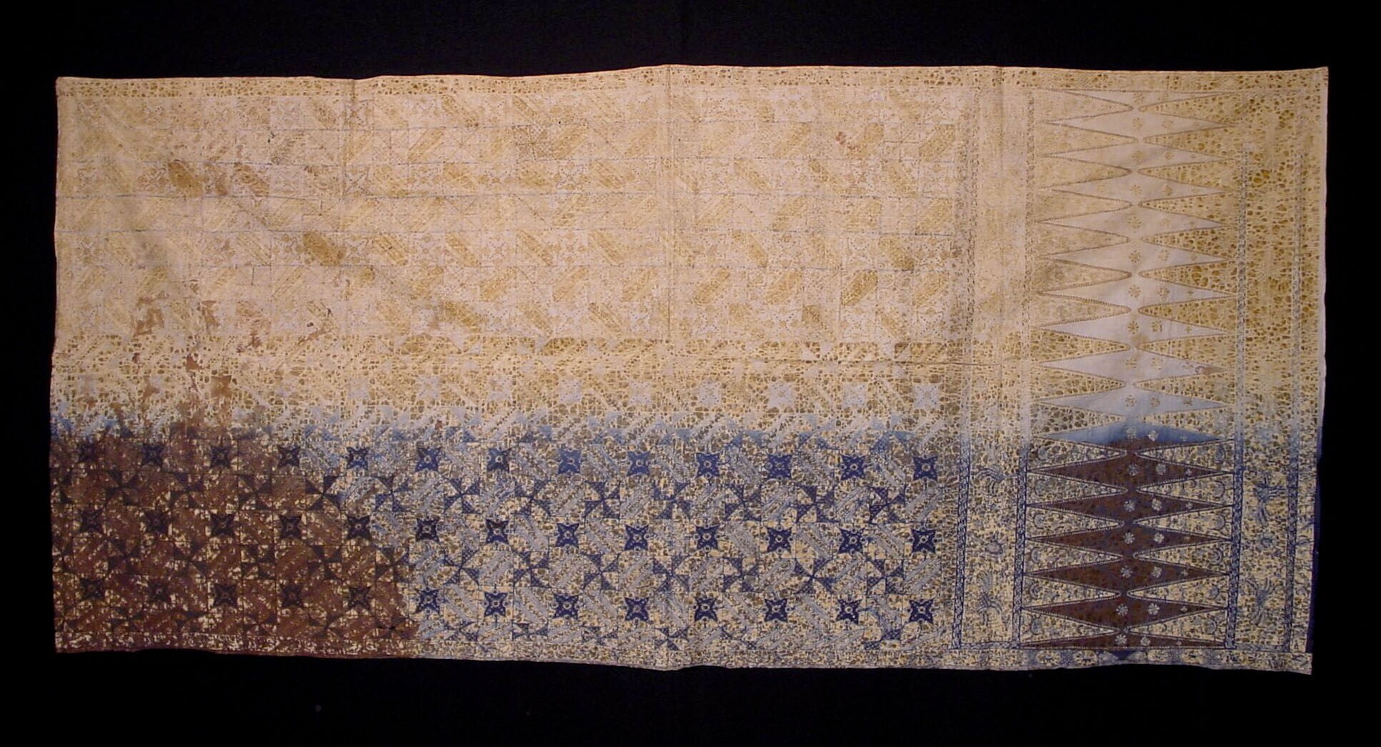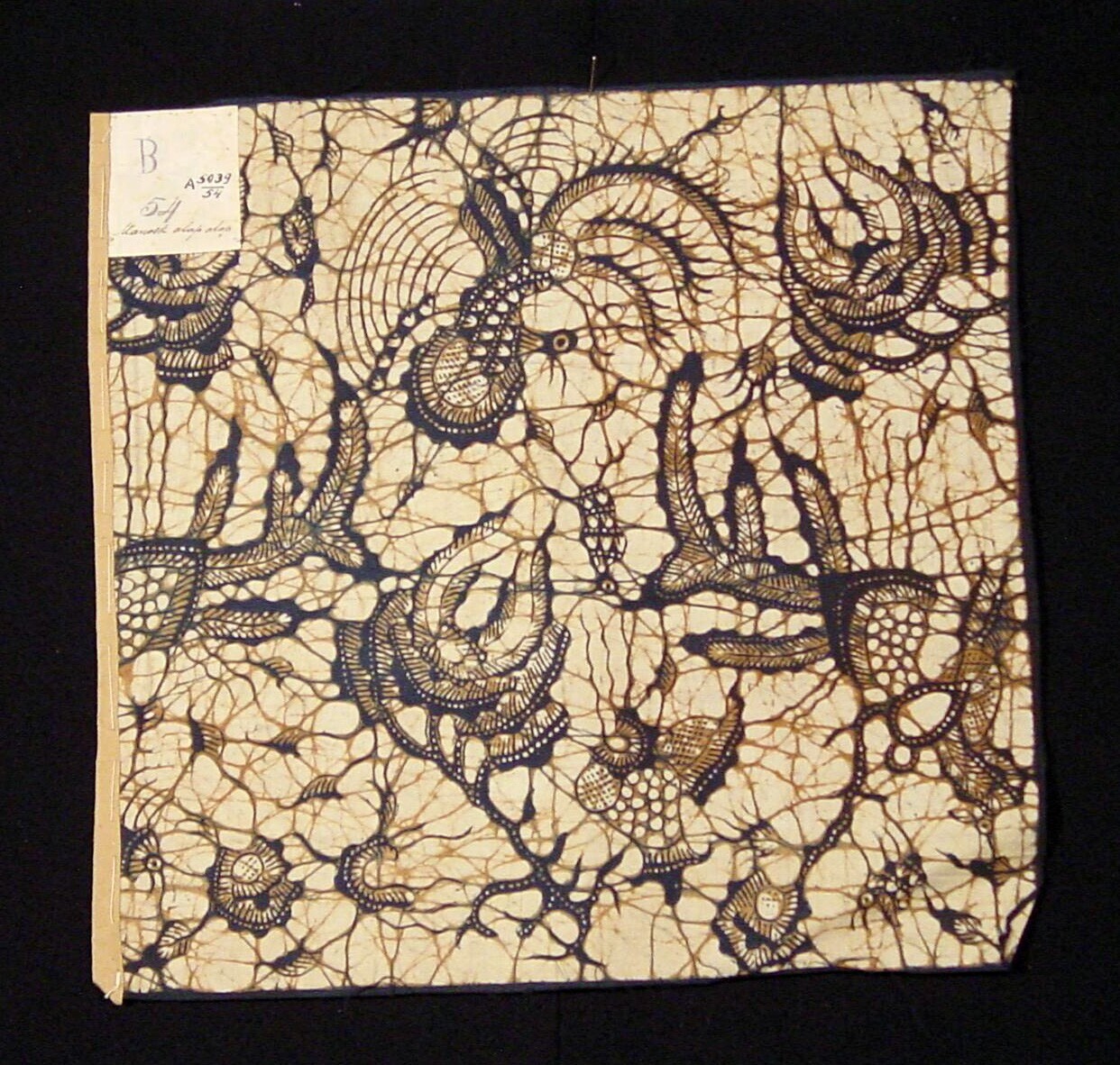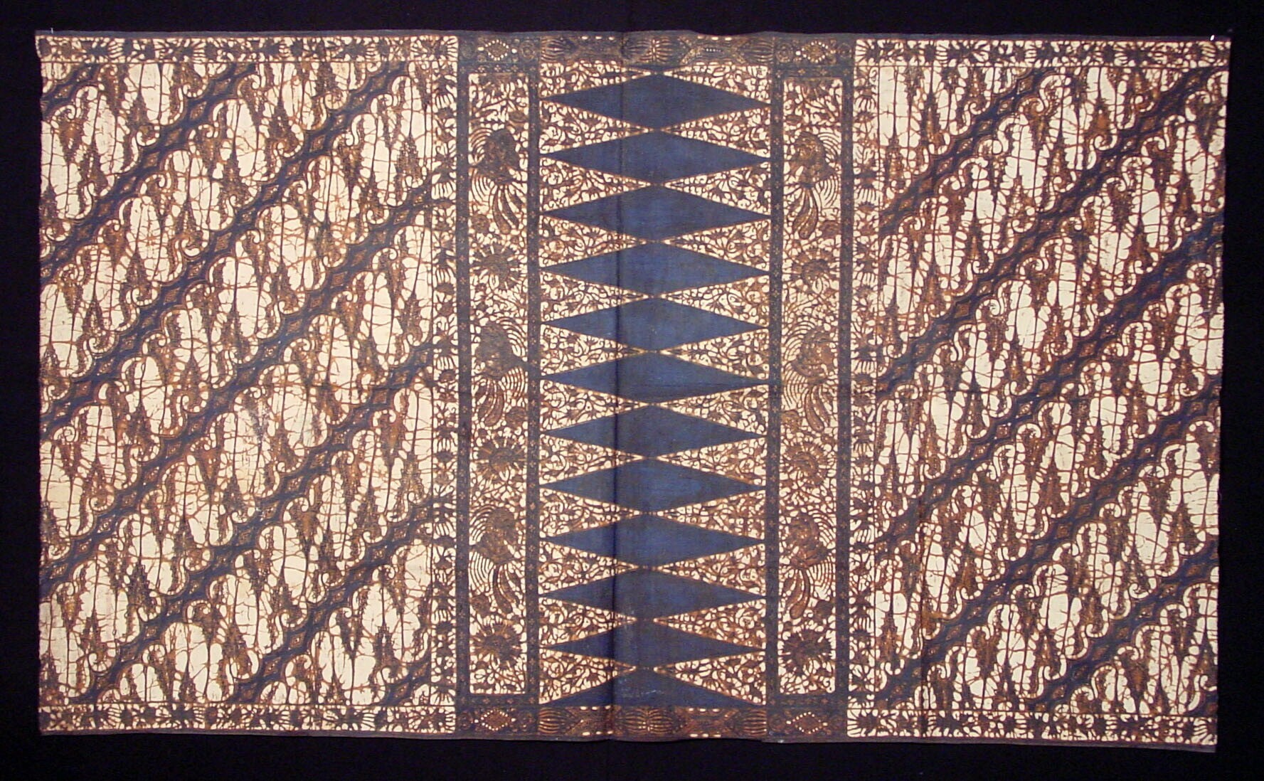 Lap batik, versierd met bruine figuren op witte grond