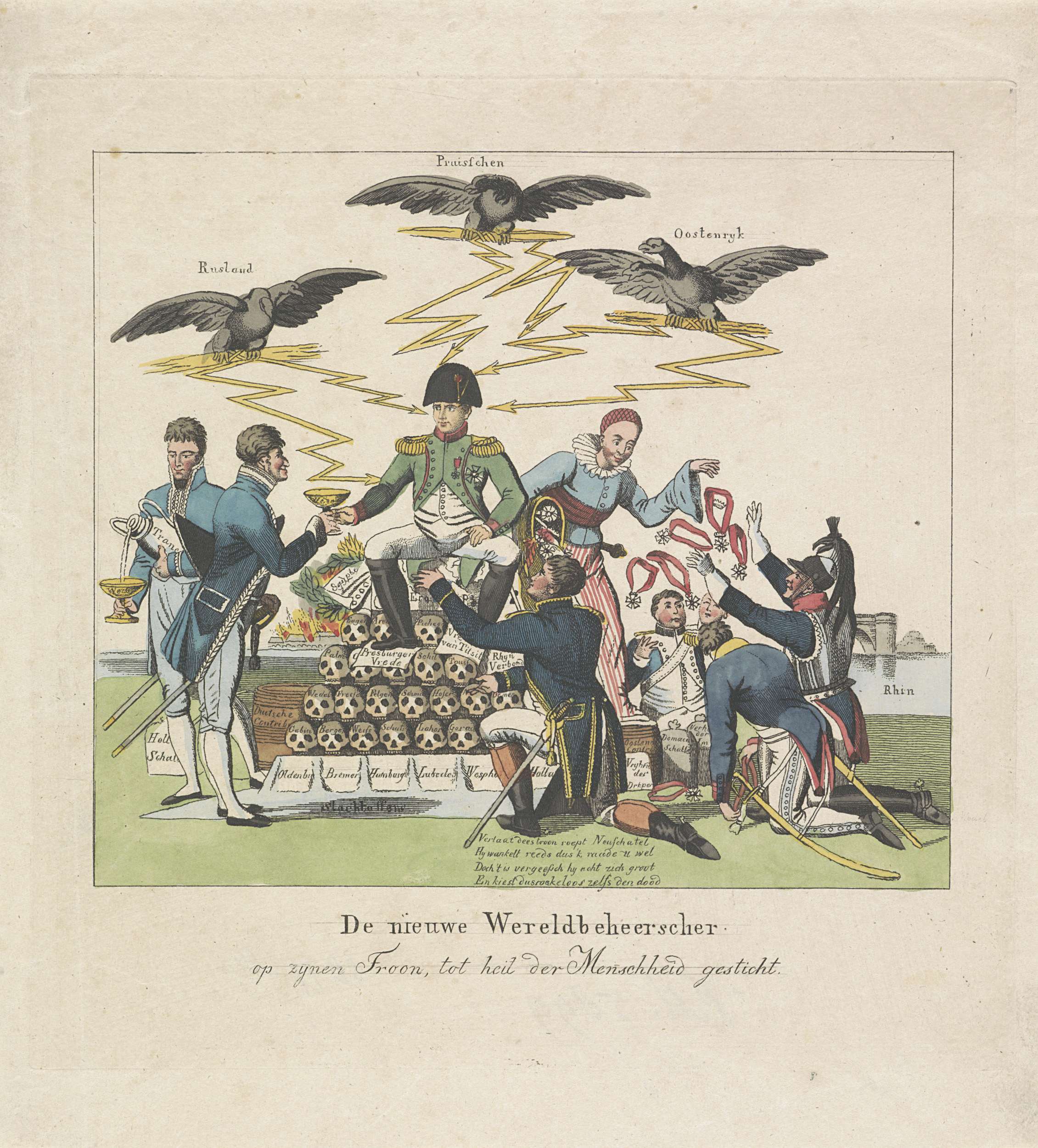 Napoleon op een troon van mensenschedels, 1813