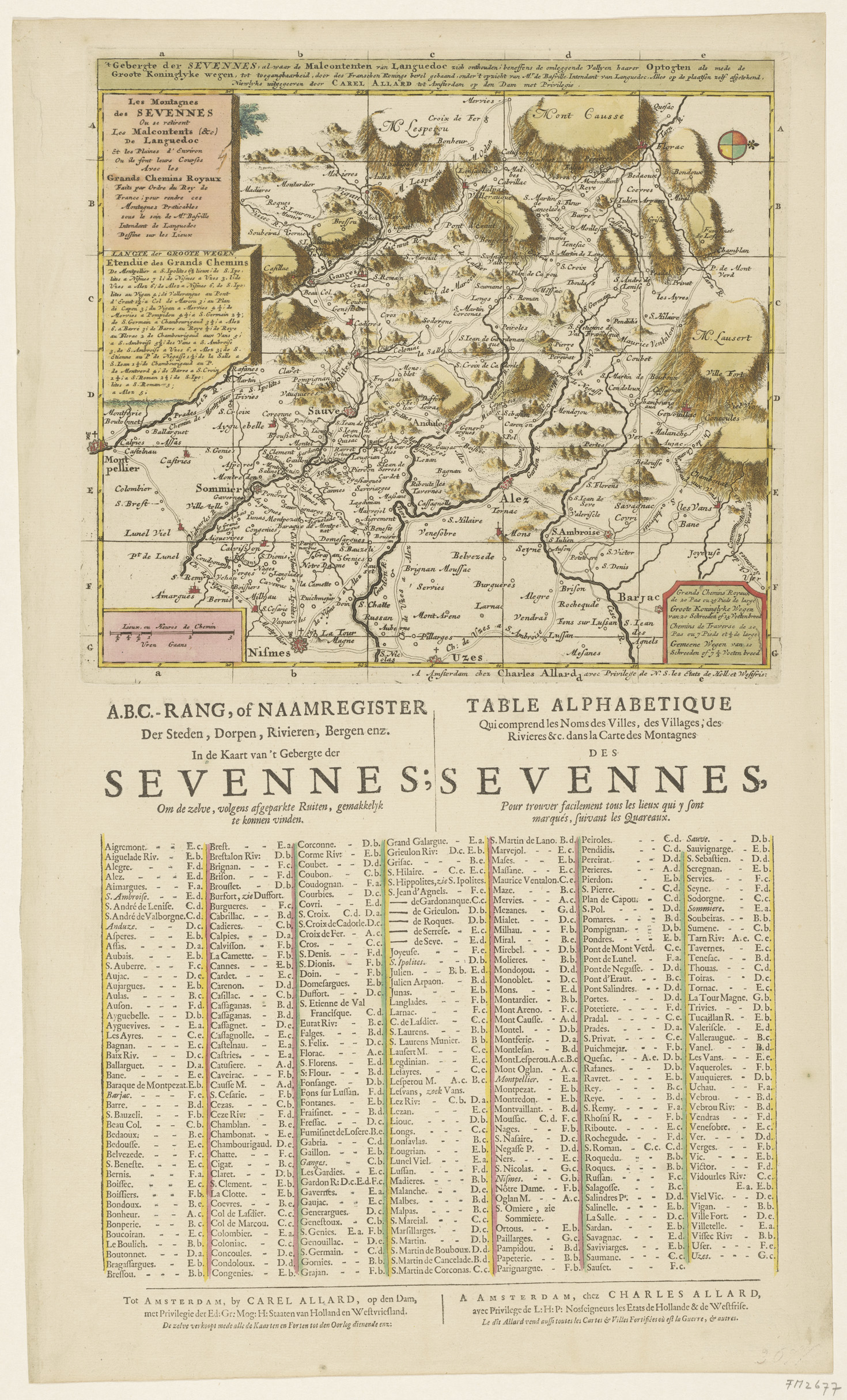 Kaart van het Sevennes gebergte in de Languedoc