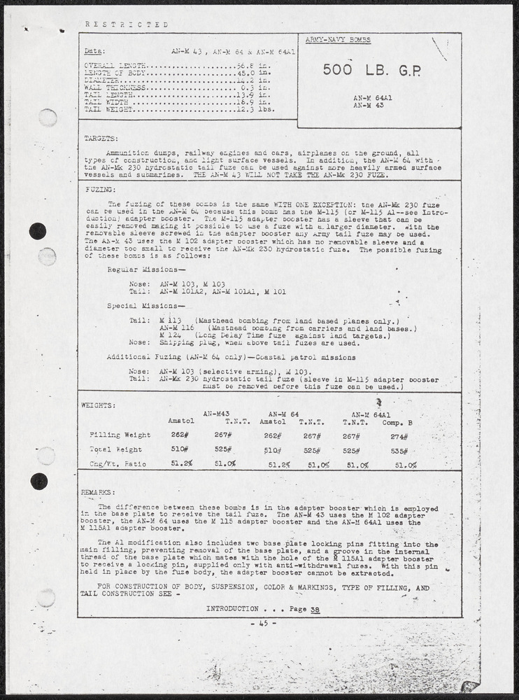500 LB General Purpose Bomb AN-M64