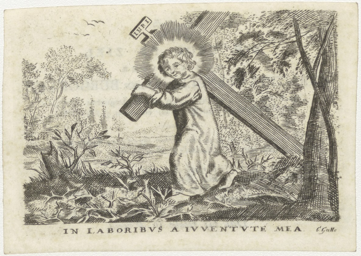 Christuskind draagt kruis, kz. Bid voor ziel Van den...
