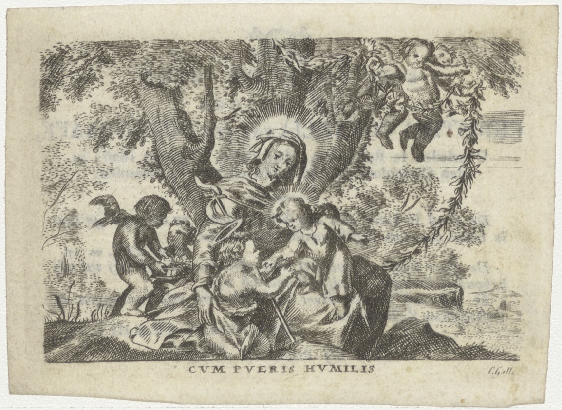 Maria met Christuskind en Johannes, kz. Bid voor zie...