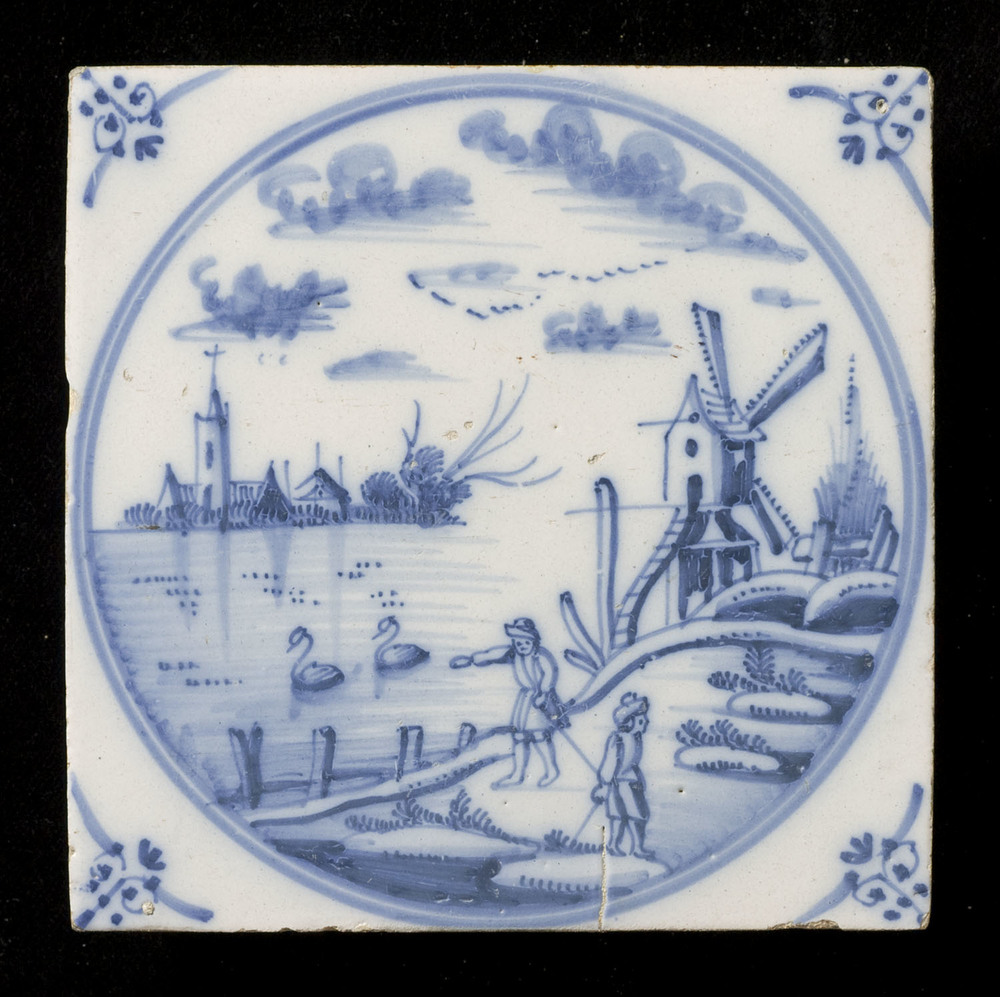 Tegel van keramiek met tinglazuur, voorstellende lan...