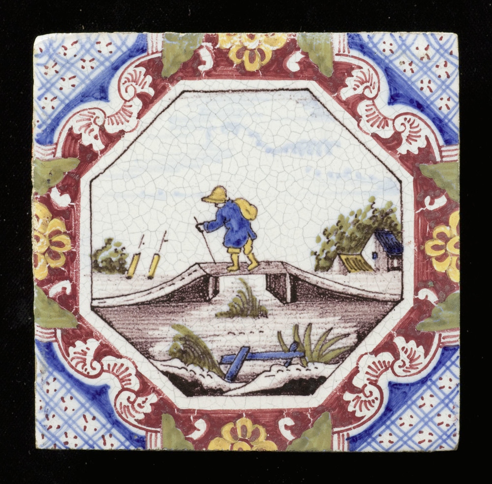 Tegel van keramiek, tinglazuur, voorstellende een in...