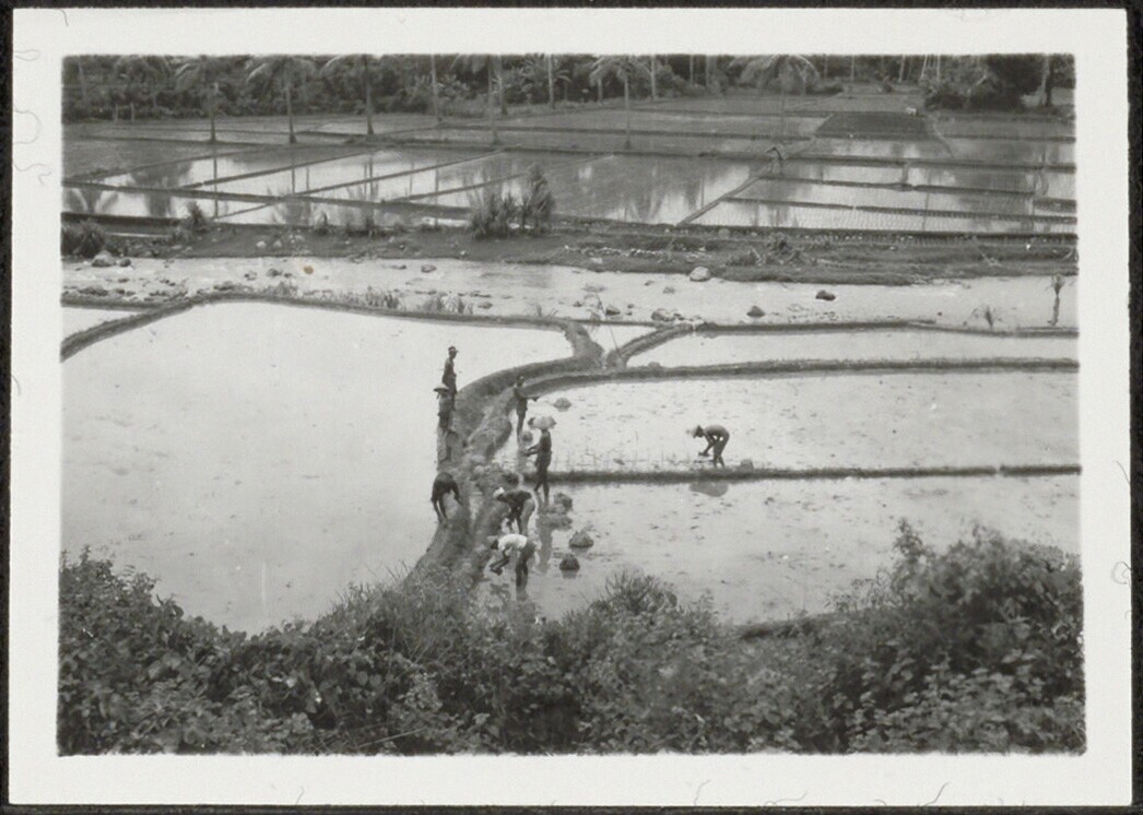 Arbeiders aan het werk op rijstvelden